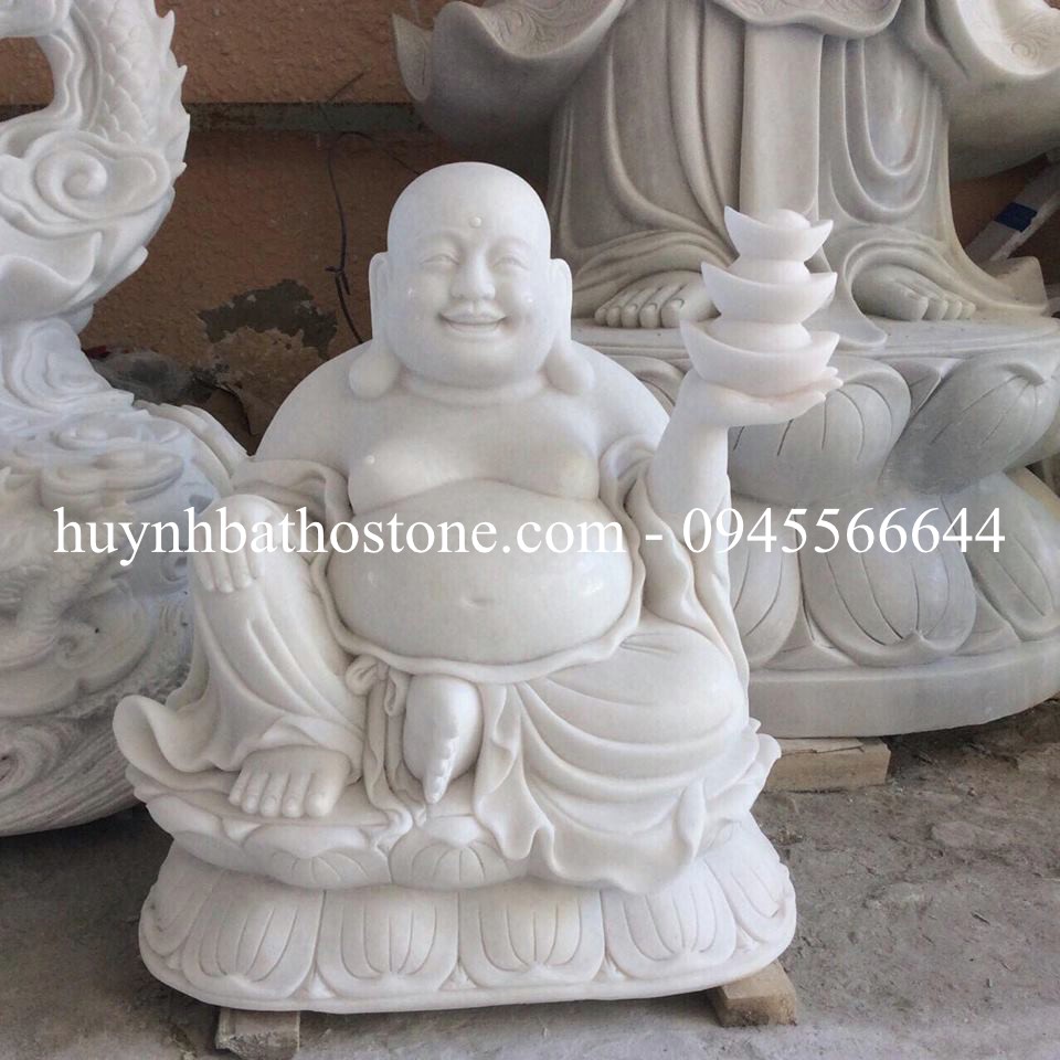 Tượng Phật Di lặc đá trắng nguyên khối cao 1.3m