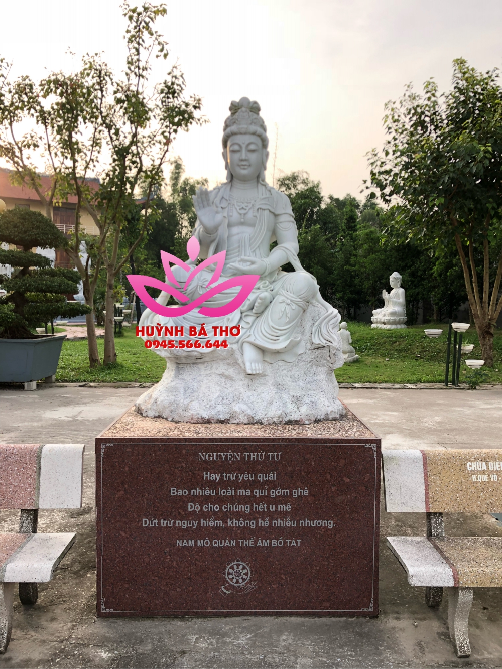 Tượng Quan Thế Âm Bồ Tát ngồi 20cm bằng đá trắng.