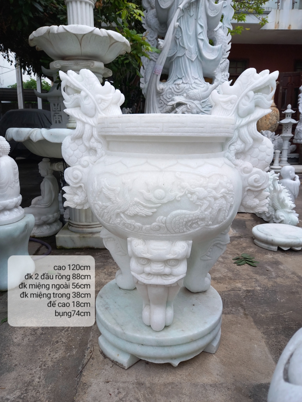 Bát hương chạm rồng đá nguyên khối cao 1,2m