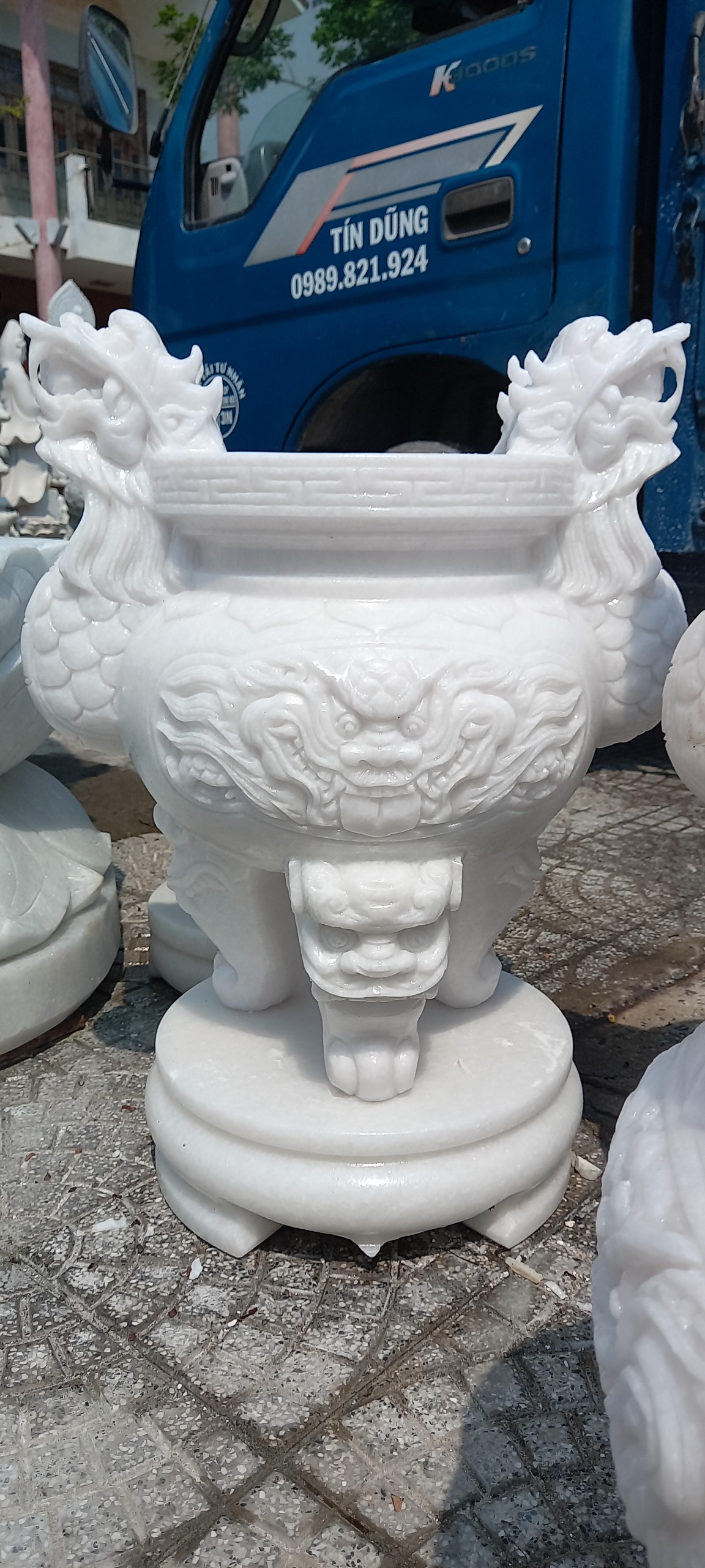 Lư hương chạm đẹp bằng đá nguyên khối loại 70cm