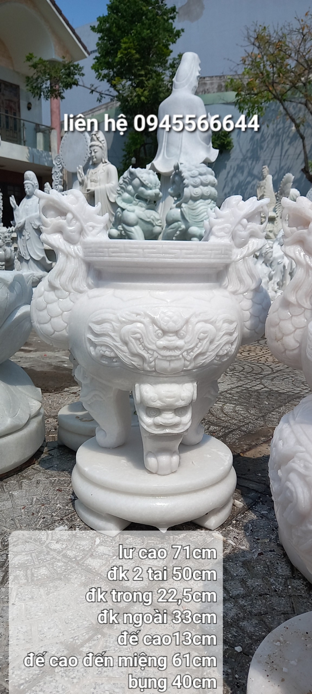 Lư hương chạm rồng cao 50cm đẹp- Bát hương chạm đệp bằng đá nguyên khối