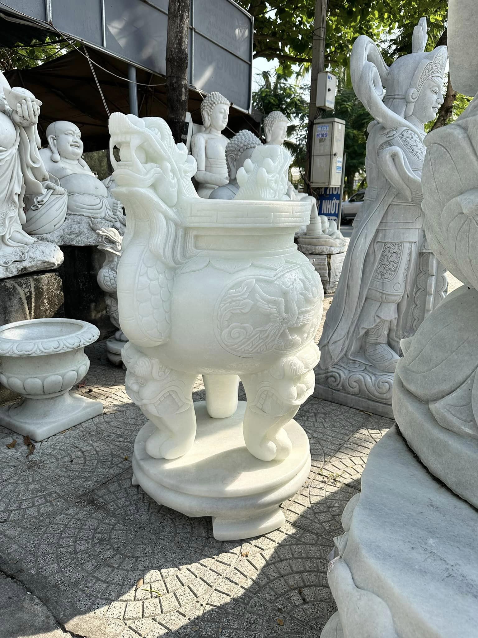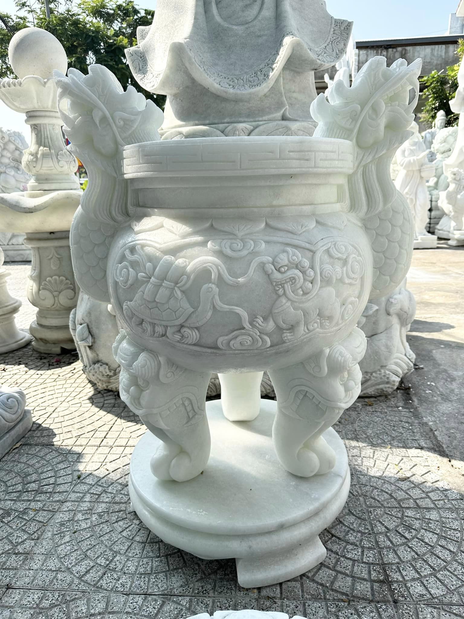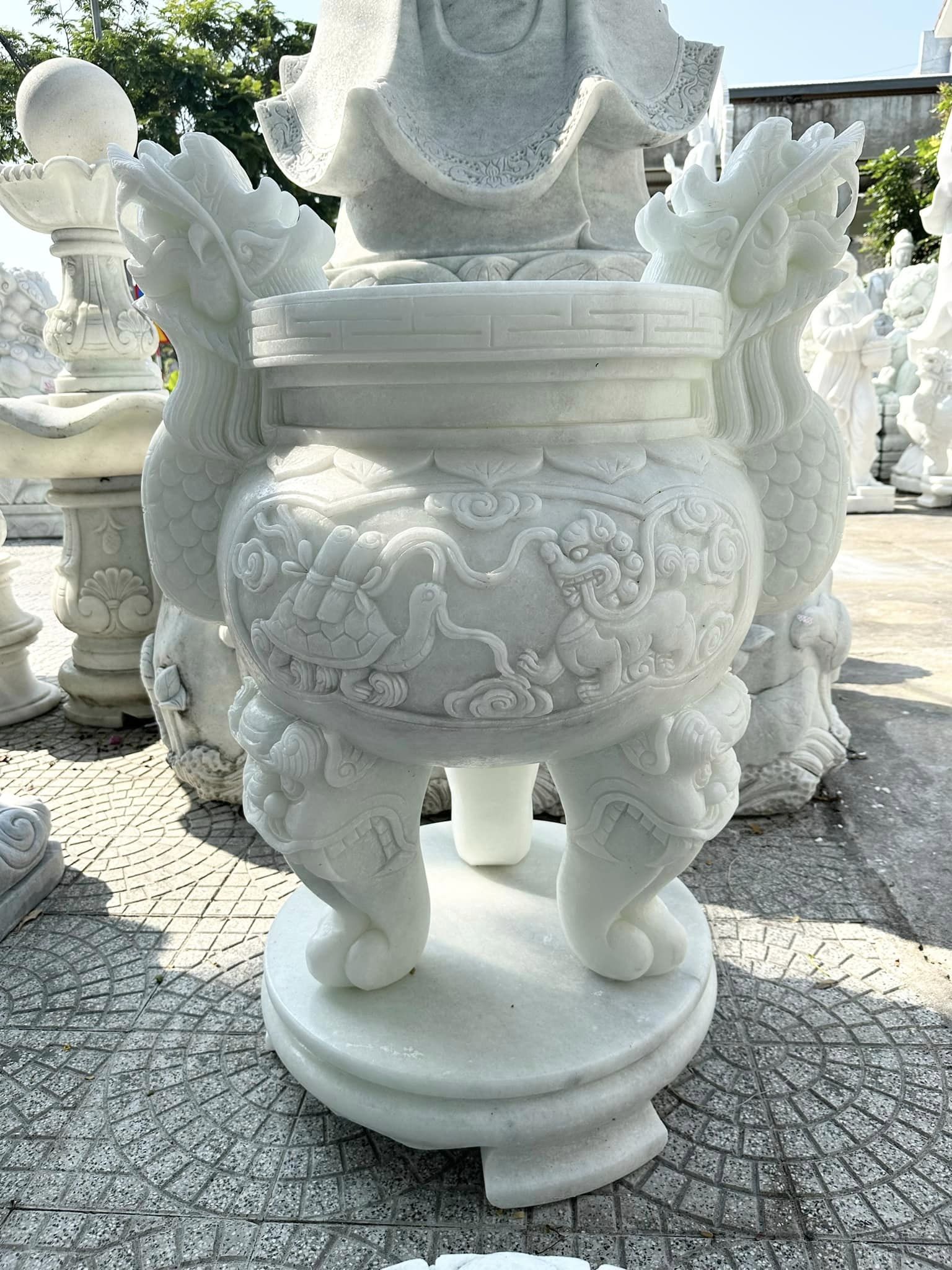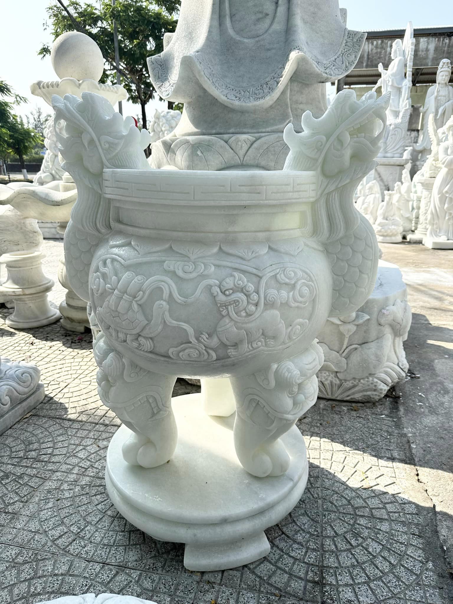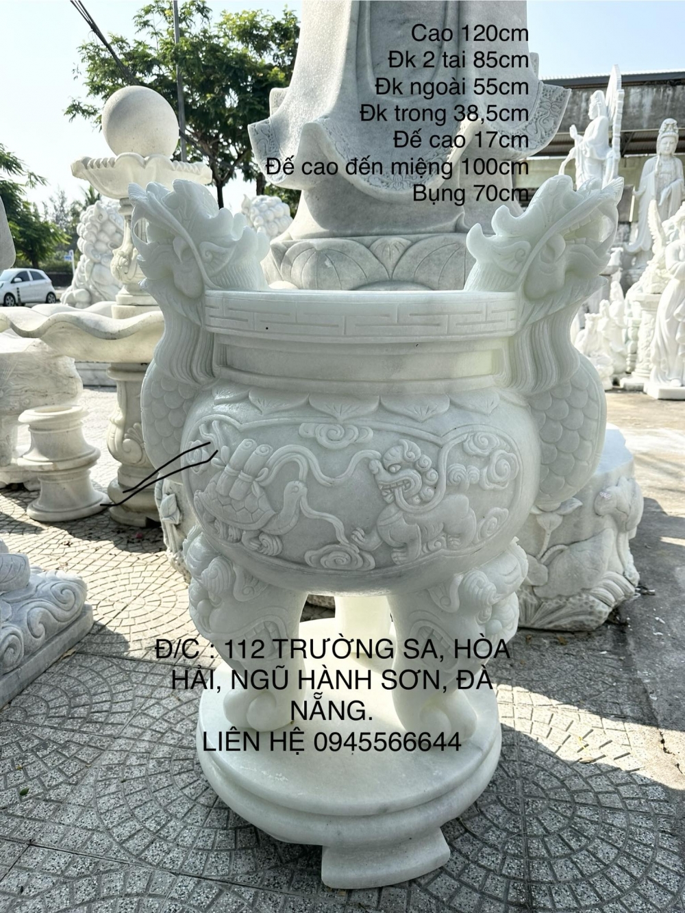 Bát nhan chạm rồng 120cm- bát hương chạm rồng bằng đá đẹp nguyên khối.