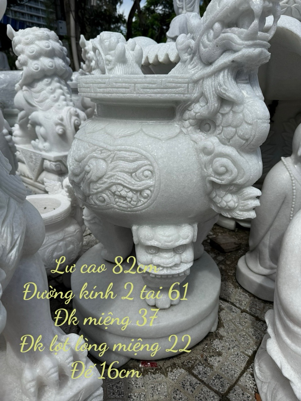 Bát nhan chạm rồng 120cm- bát hương chạm rồng bằng đá đẹp nguyên khối.
