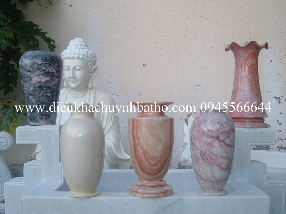 Cặp lọ hoa đá vân gỗ nguyên khối