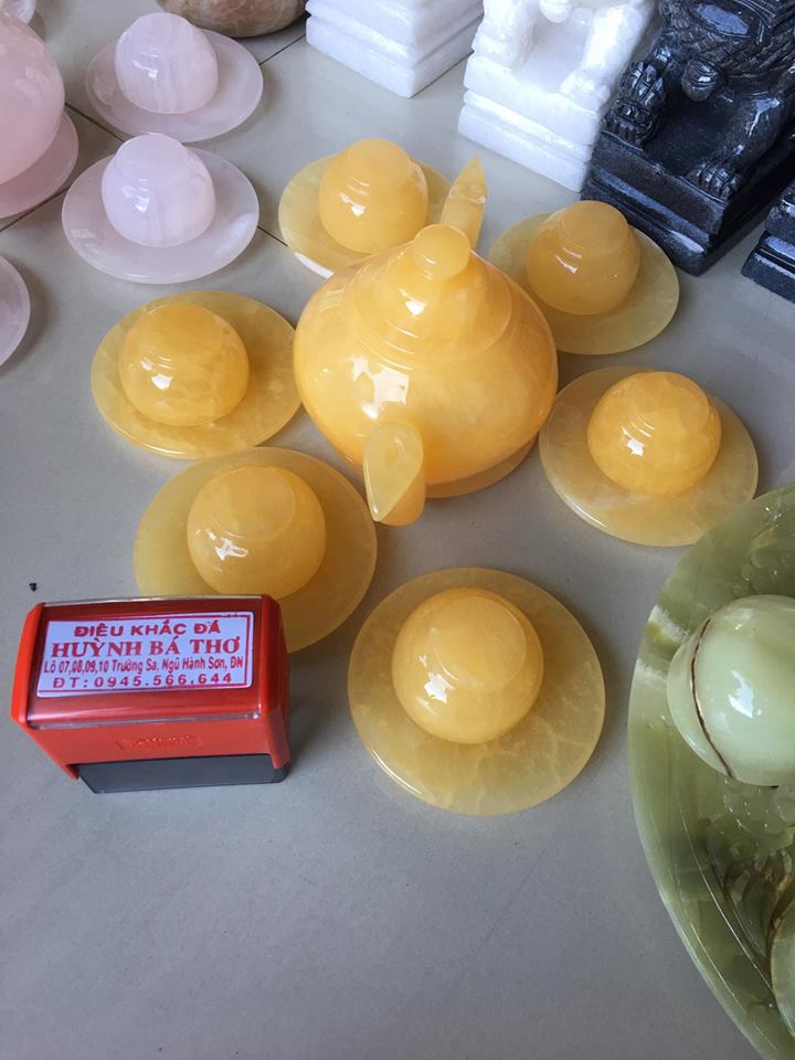 Bộ ấm chén size đại đá ngọc hoàng long nguyên khối và ngọc pakistan nguyên khối.