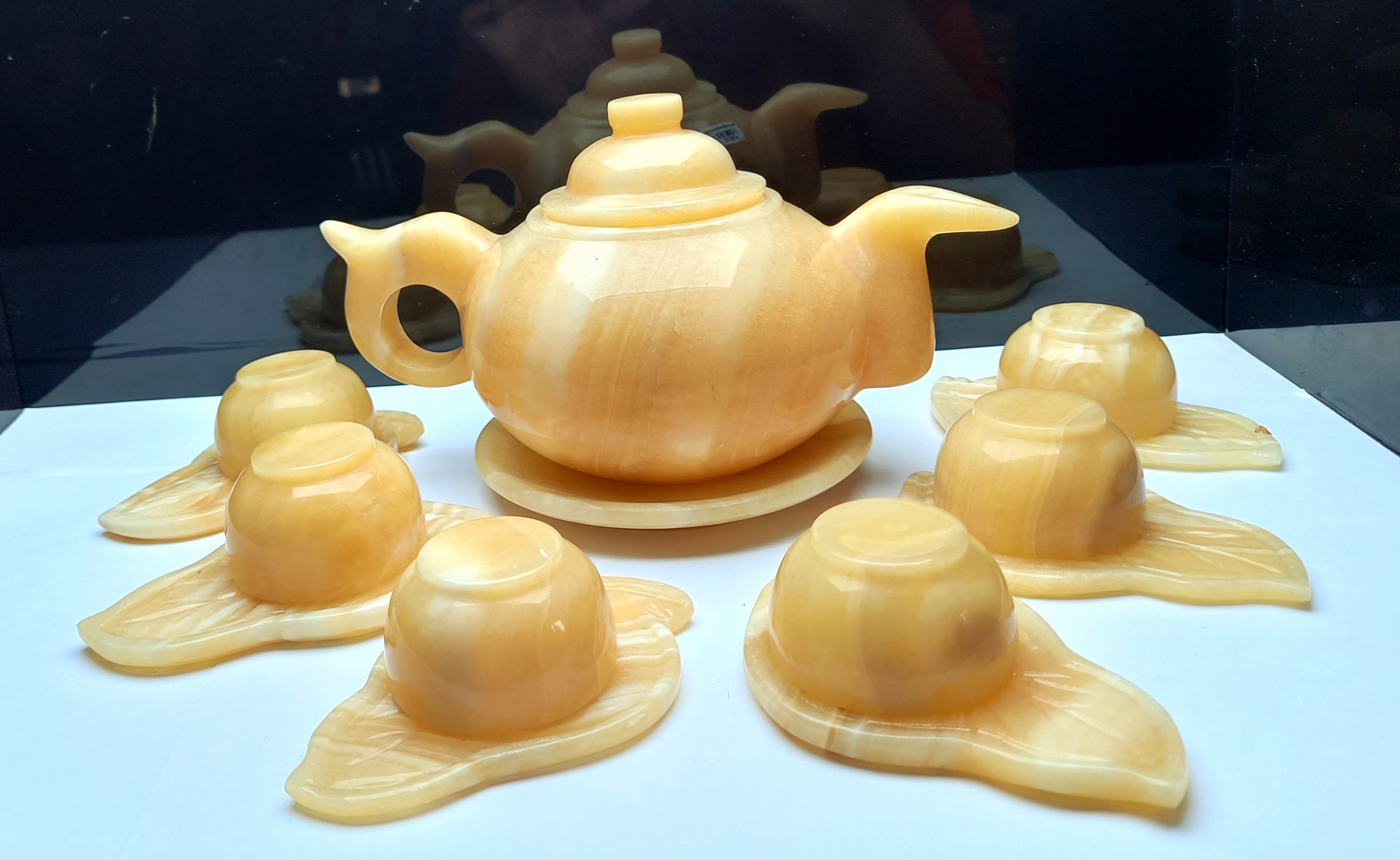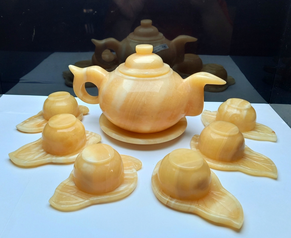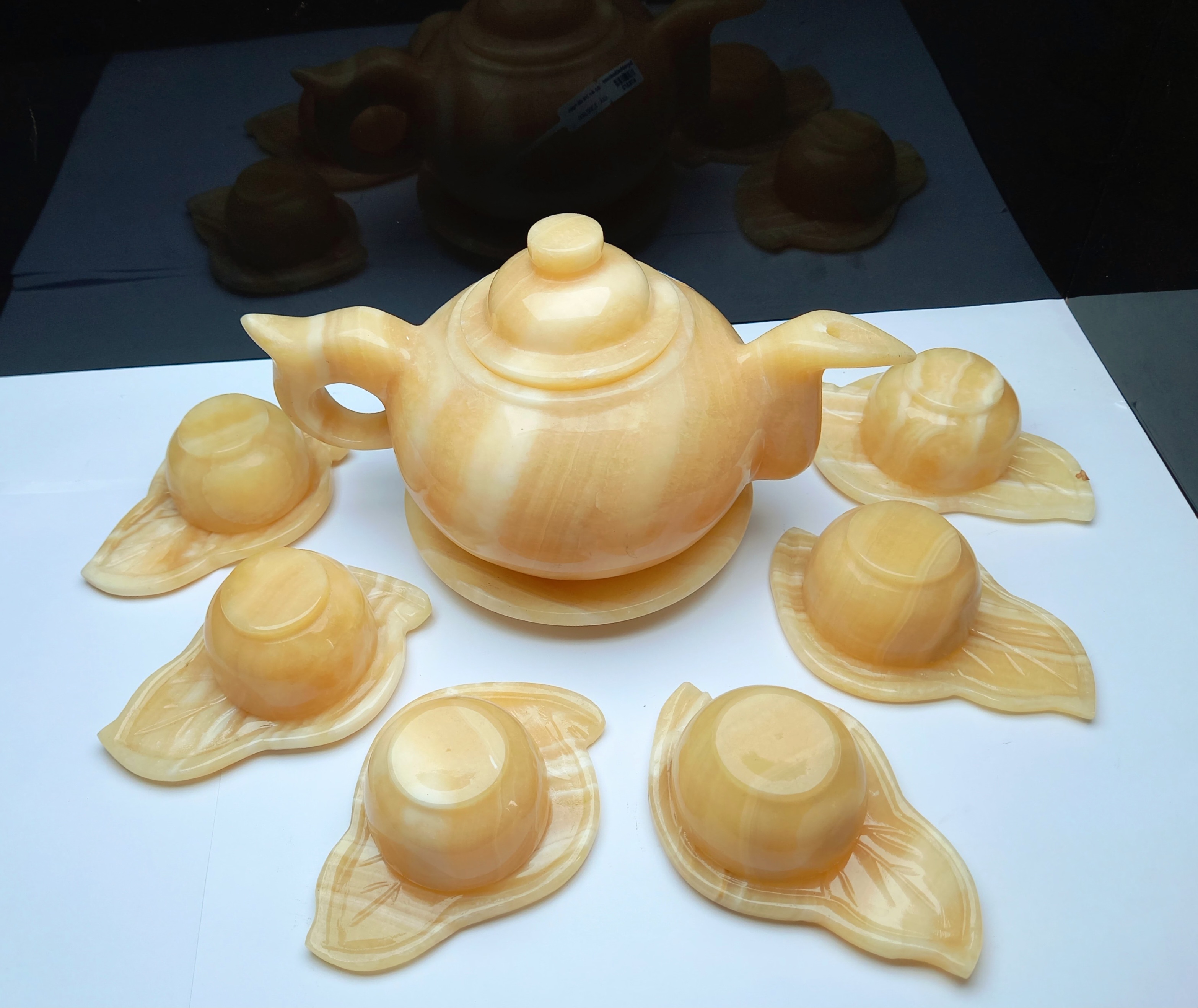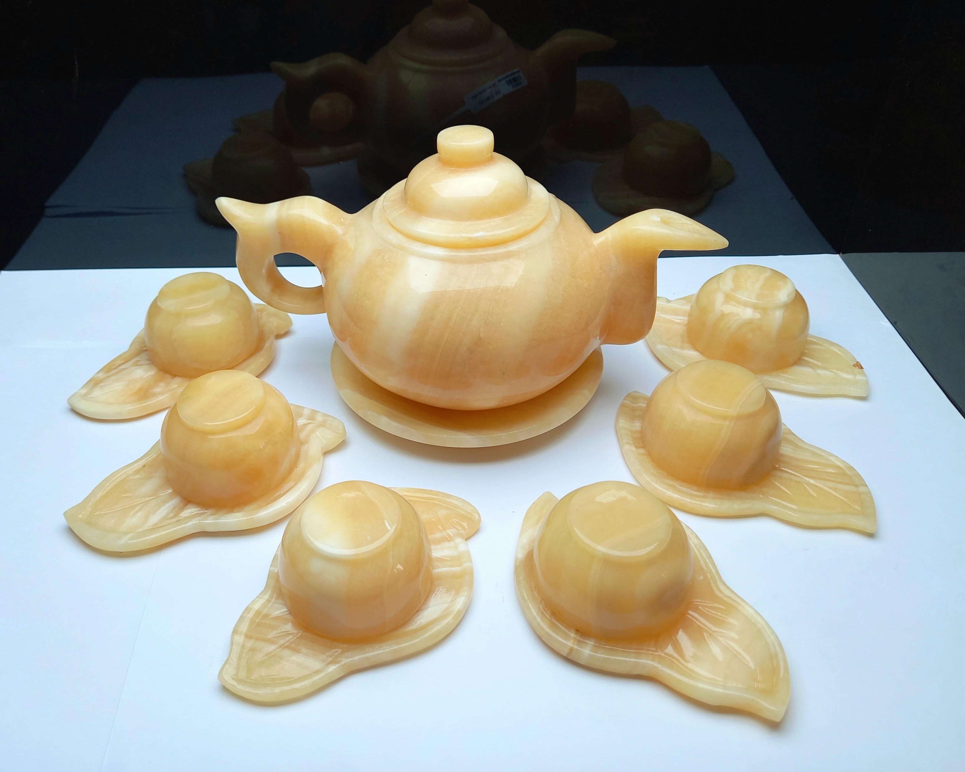 Bộ ấm trà đá ngọc hoàng long hình chiếc lá bộ 6ly.