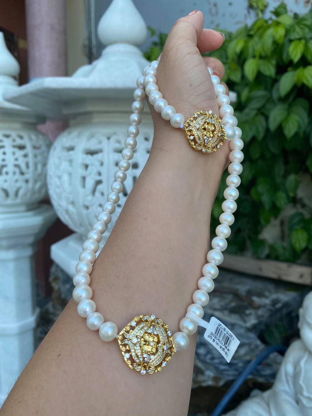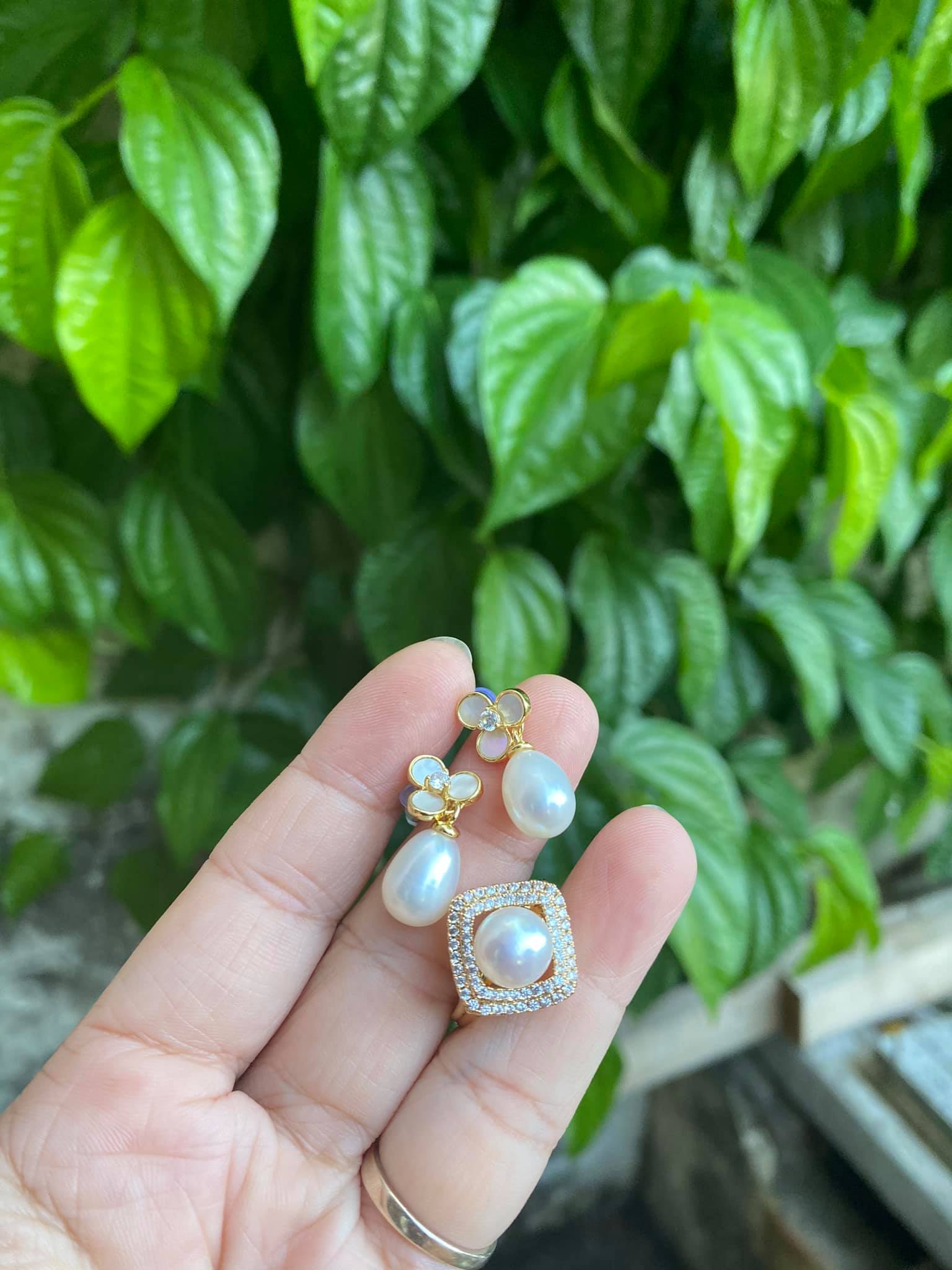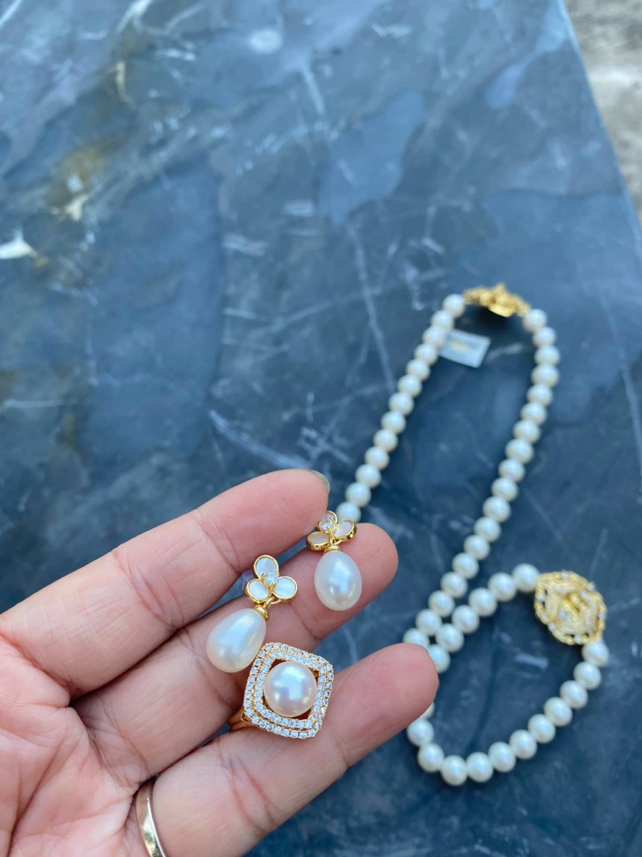 bộ ngọc trai tròn đẹp mix phụ kiện xi vàng