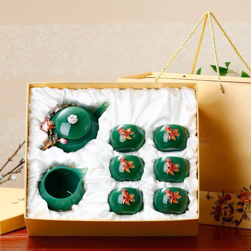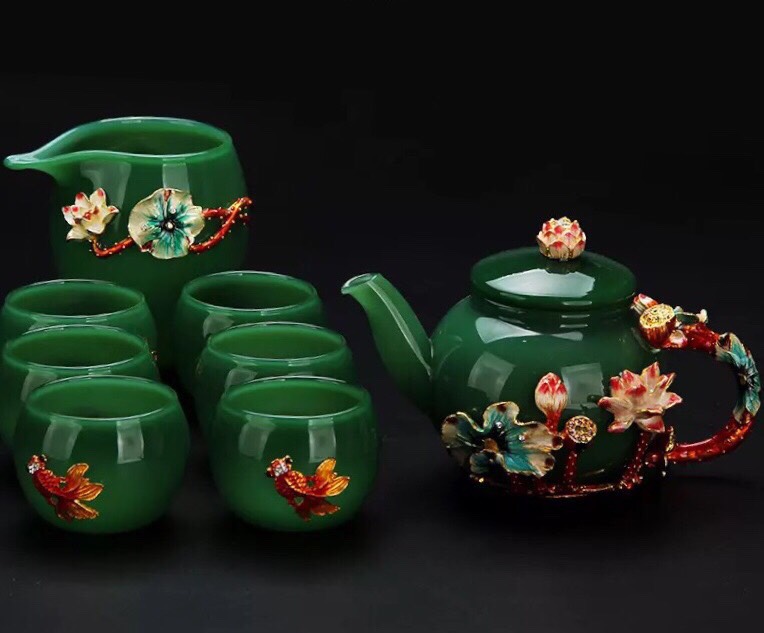 Bộ ấm trà đá ngọc hoàng long hình chiếc lá bộ 6ly.