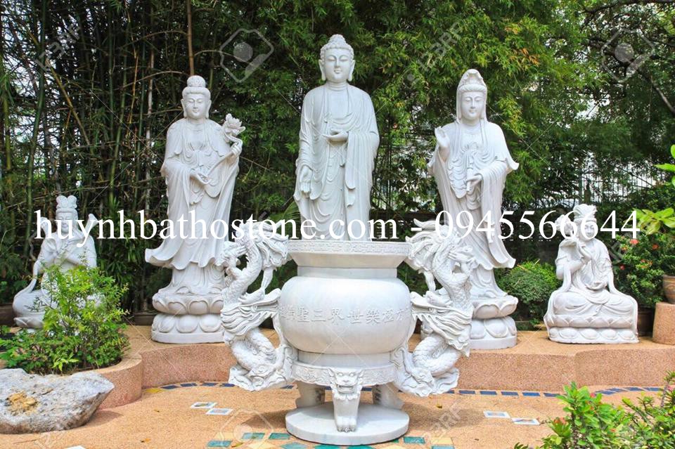 Bộ Tam Thế Phật đá trắng nguyên khối