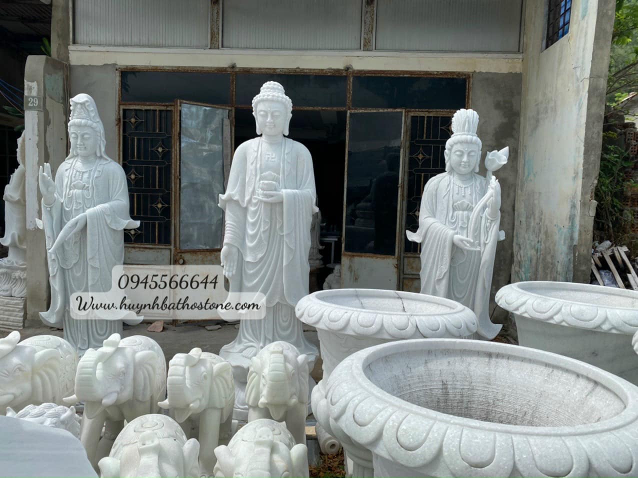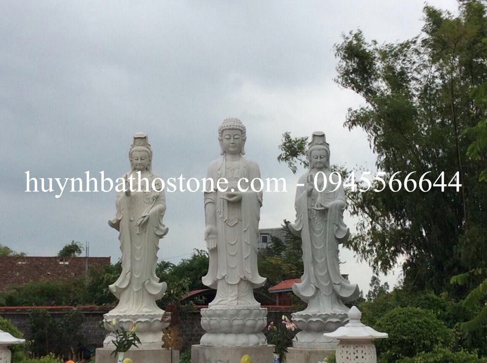 Tượng Tam Thánh - Tây Phương Tam Thánh bằng đá có độ bền cao, óng đẹp, thích nghi cực tốt với mọi điều kiện thời tiết. Sản phẩm được chế tác nhiều kiểu hoa văn sắc sảo độc đáo, tạo nên được hồn riêng của pho tượng.
