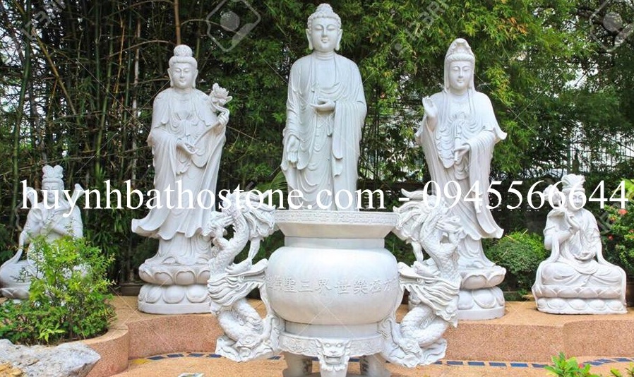 Bộ Tam Thế Phật đá trắng nguyên khối