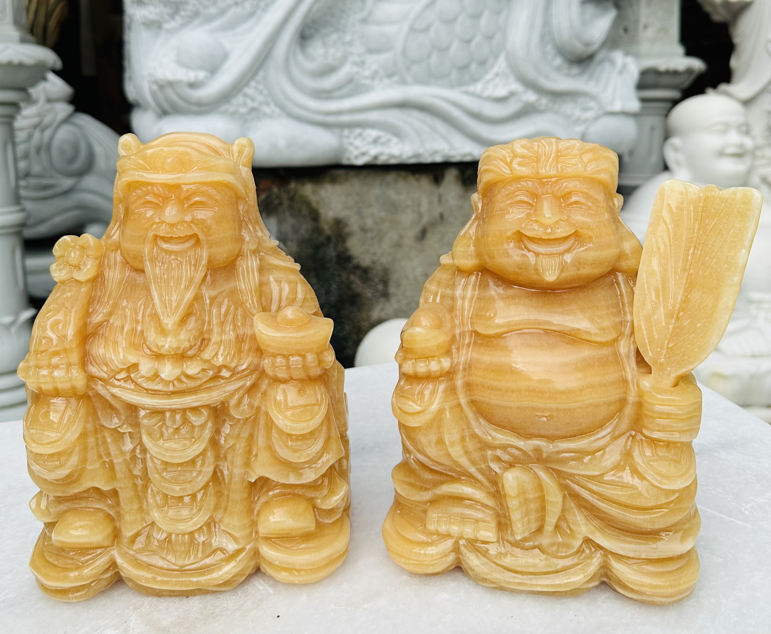 Bộ thần tài thổ địa đá Ngọc cao 20cm hoàn hảo chạm rõ nét 2 ngài