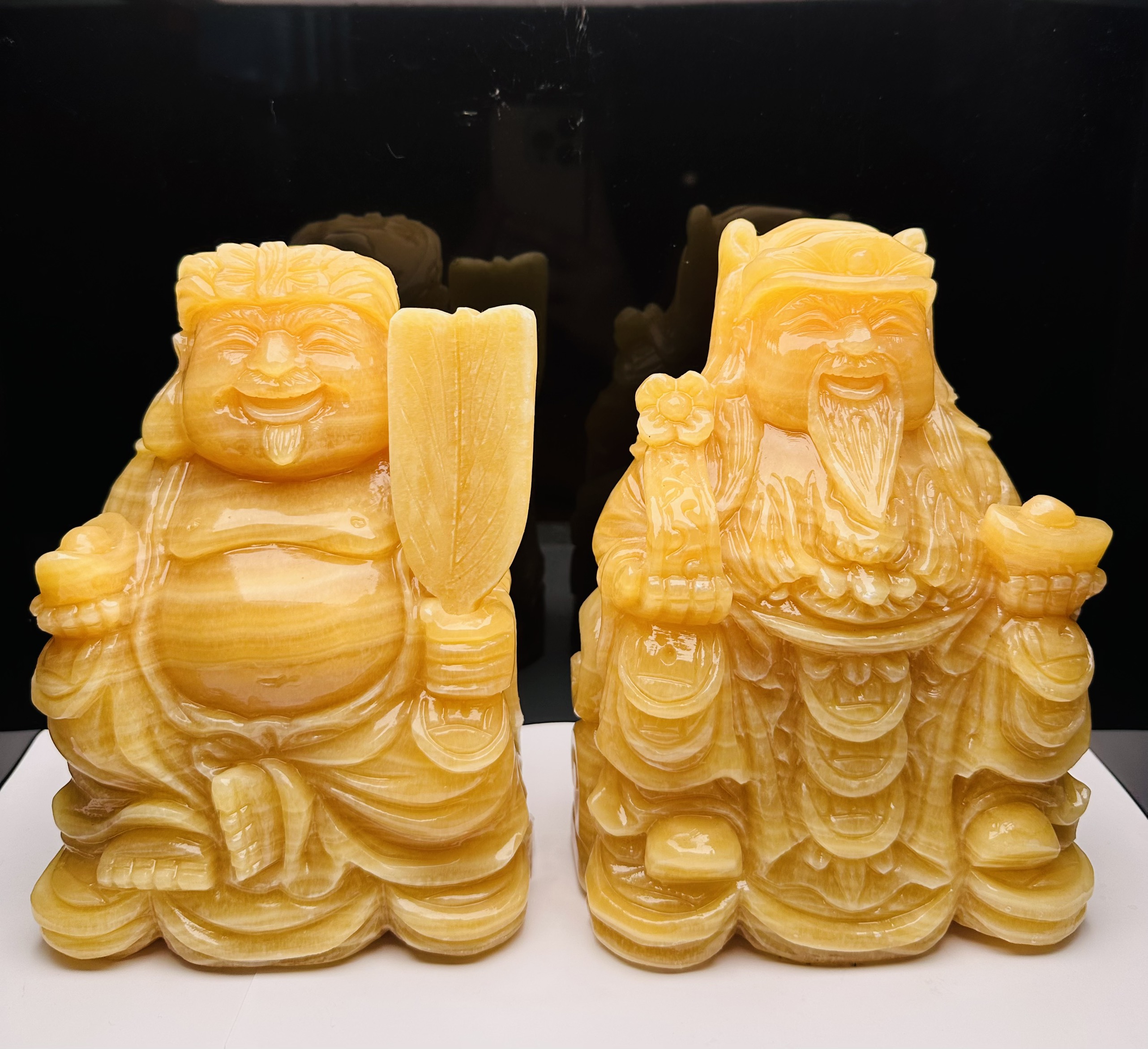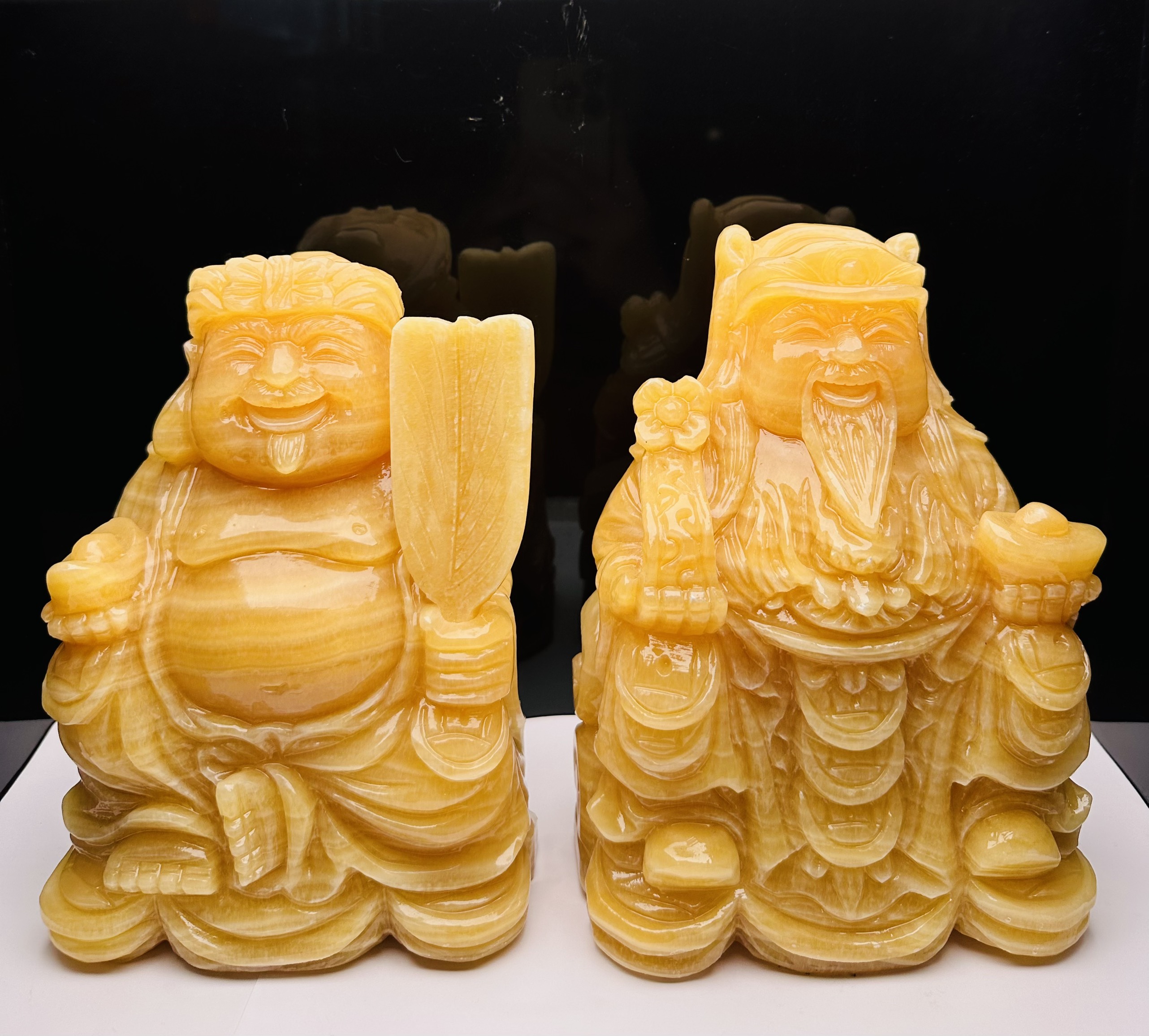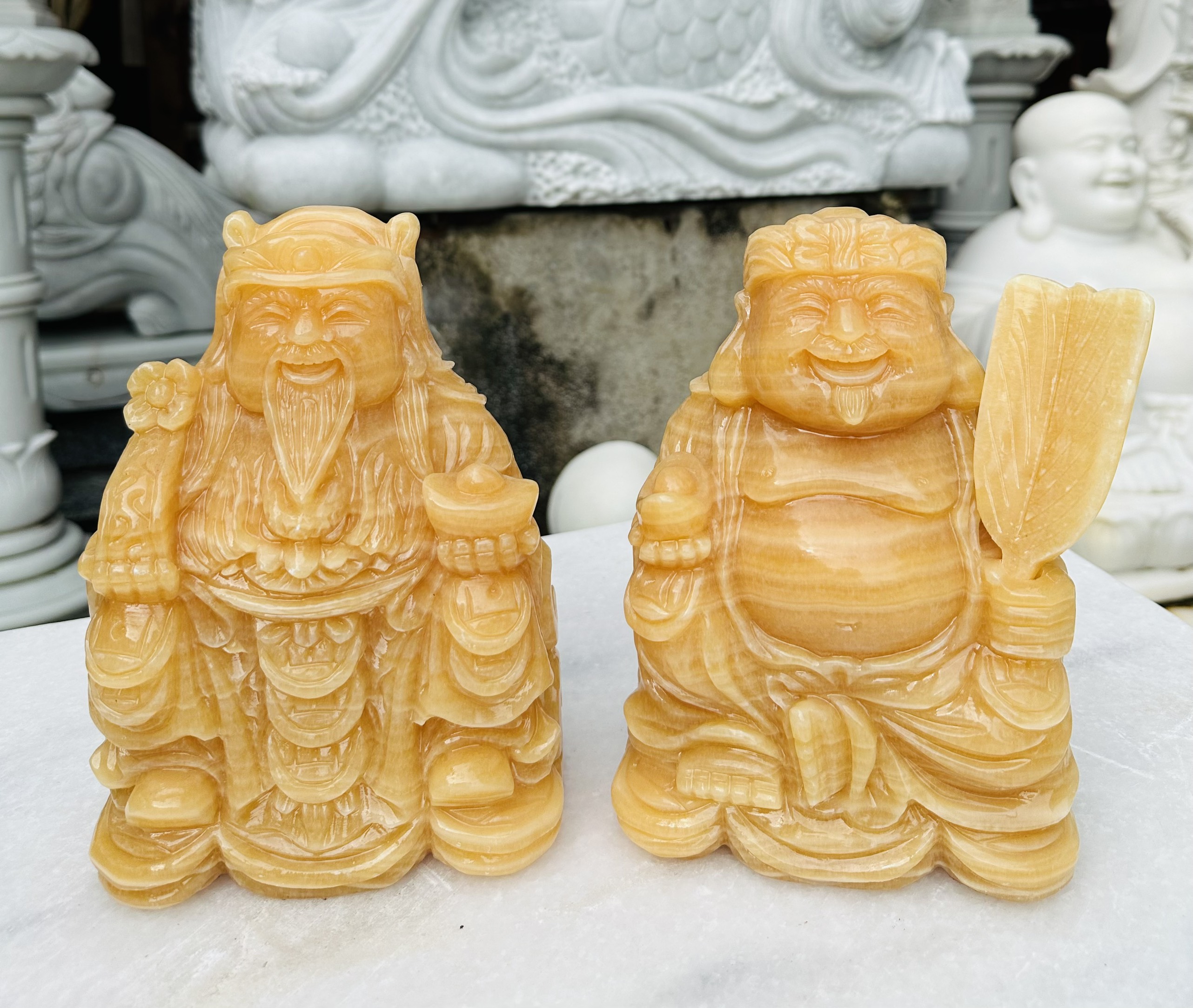 Bộ thần tài thổ địa đá Ngọc cao 20cm hoàn hảo chạm rõ nét 2 ngài.