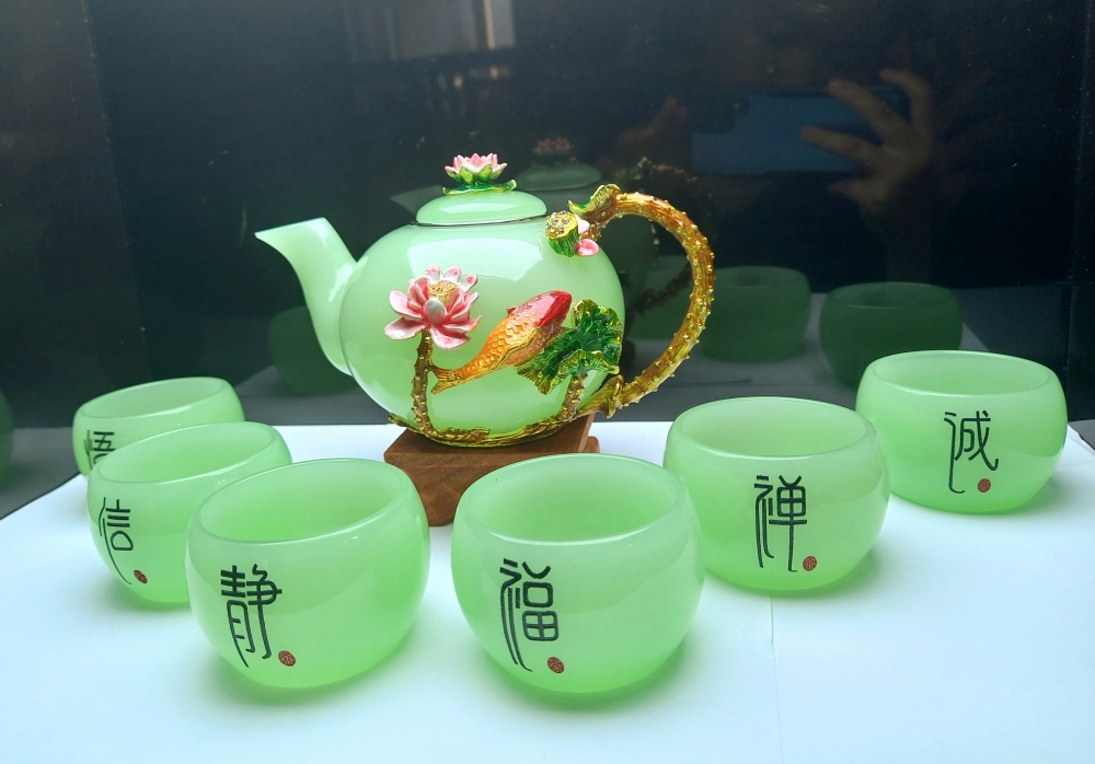 Bộ trà đá ngọc xanh cá chép hoa sen
