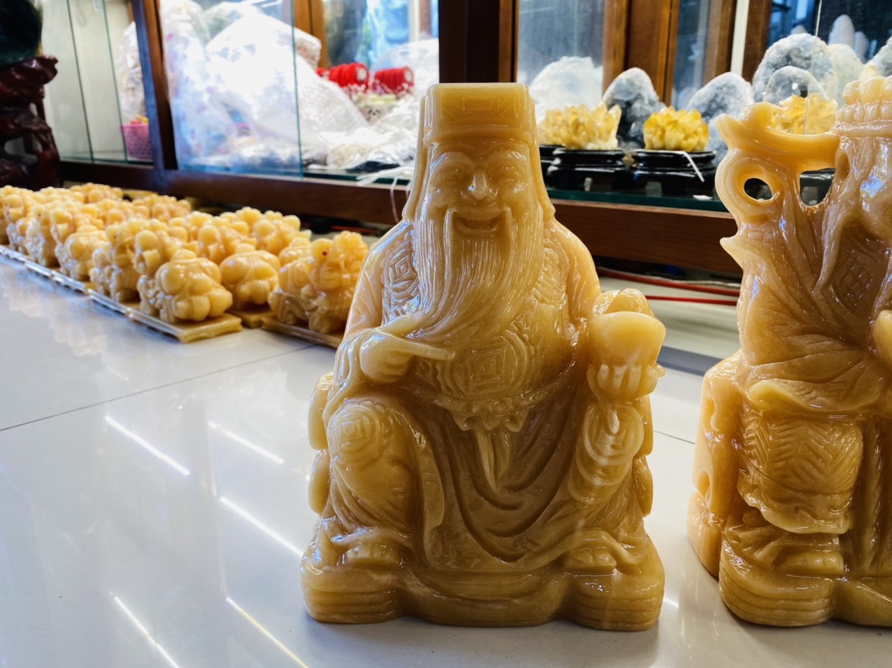 Bộ tượng thần tài thổ địa và thần tiền cao 25cm đá Ngọc hoàng long nguyên khối-Mỗi tượng 25cm giá thỉnh 3,2tr. Cả bộ 9,5 triệu.