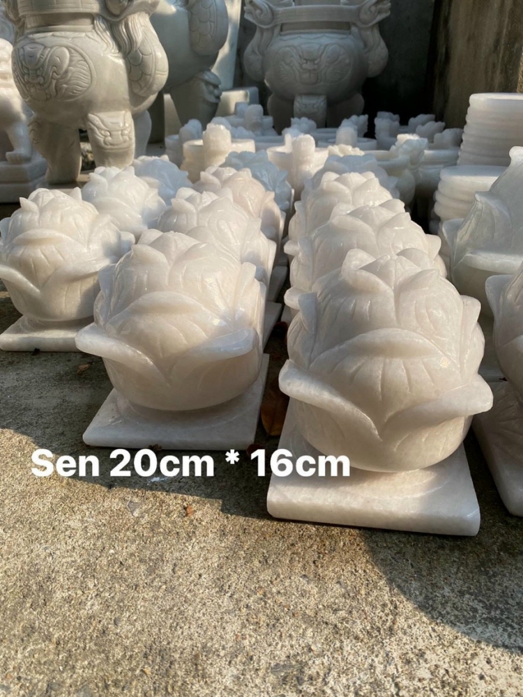 Búp sen đá Cẩm thạch trắng đế vuông