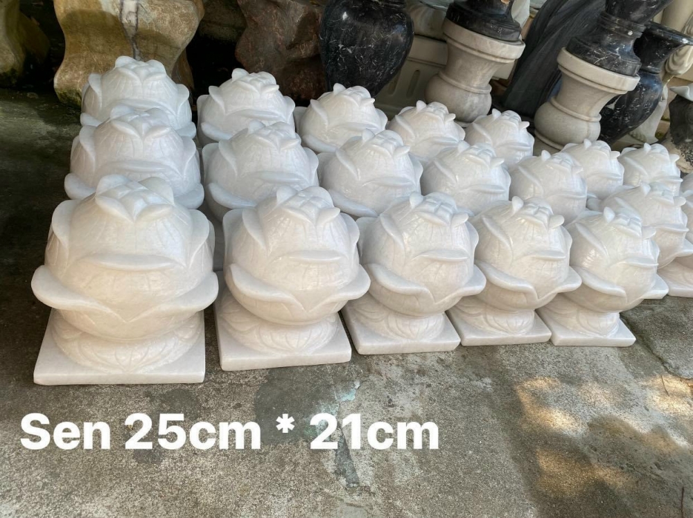 Búp sen đá trang trí đá cẩm thạch trắng đế vuông.