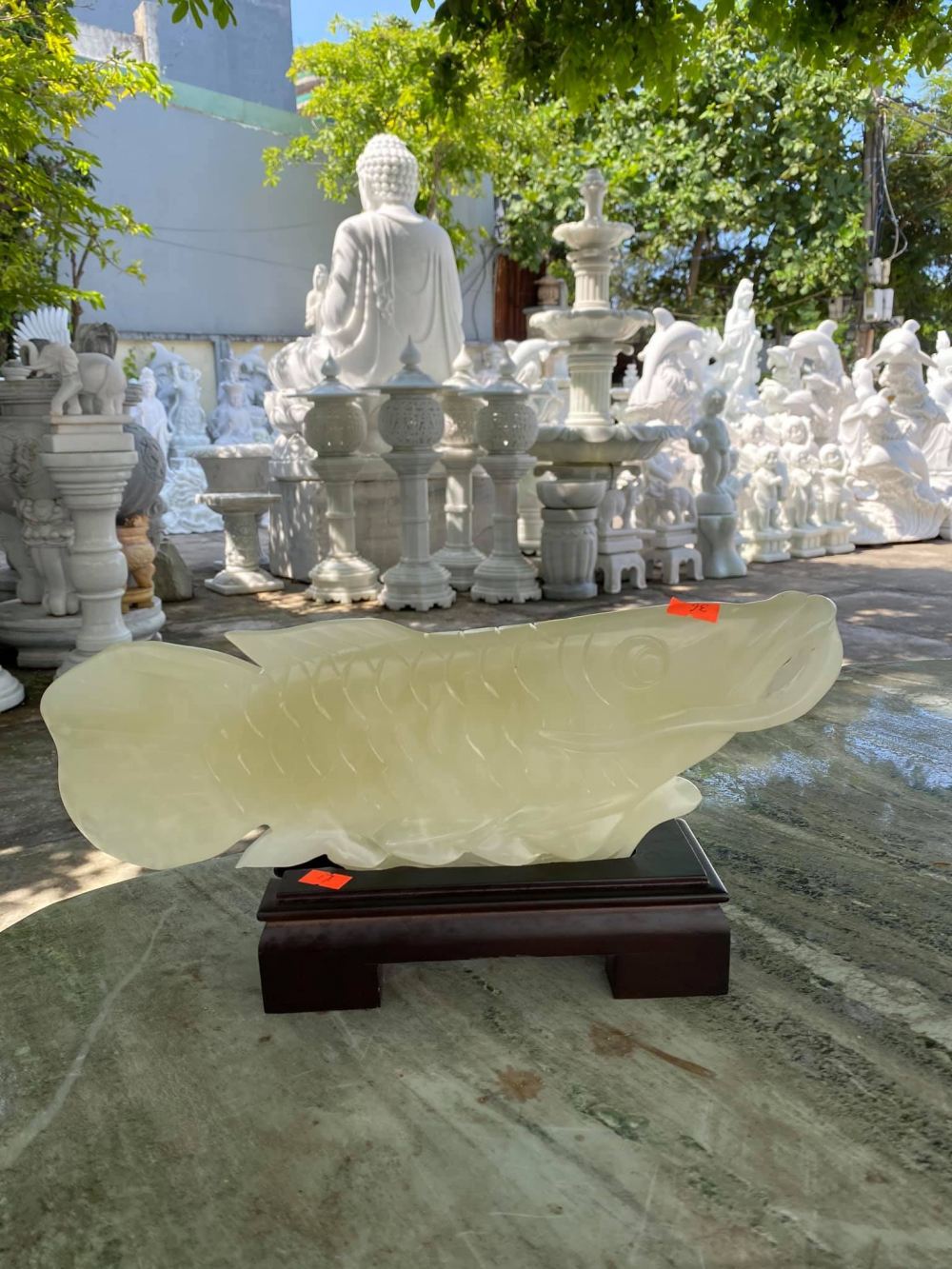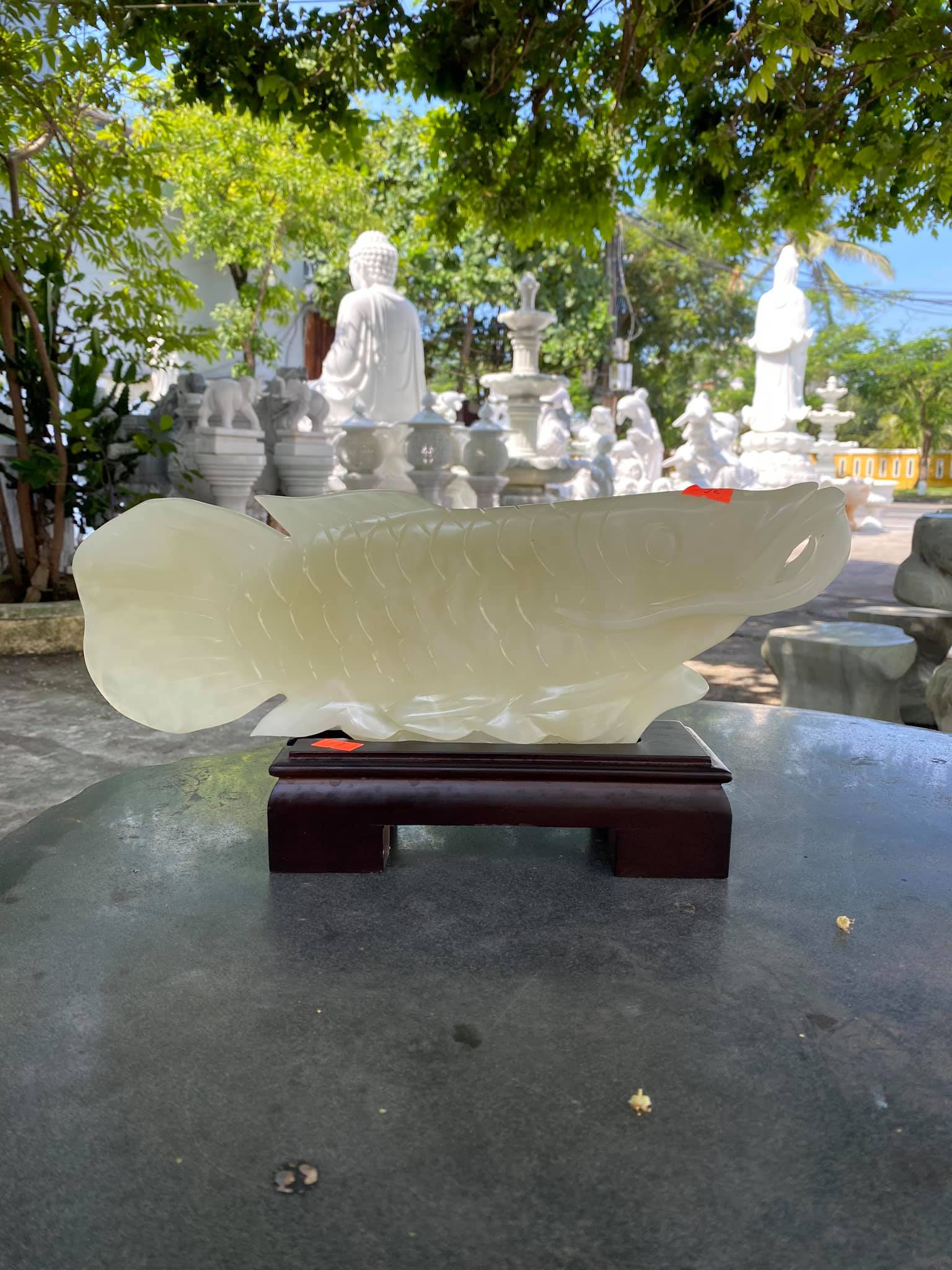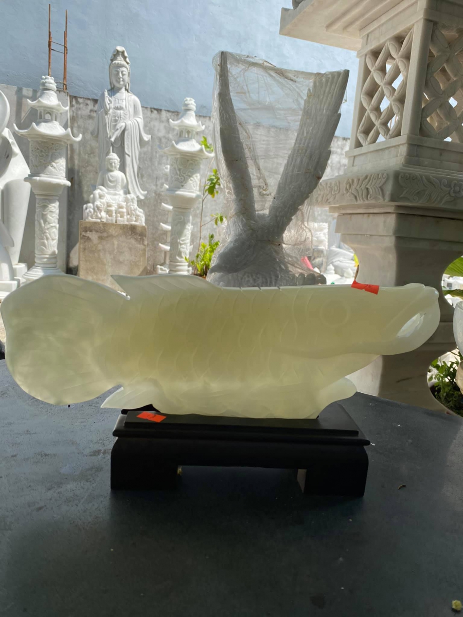 + Cá Kim Long phong thủy đá ngọc Pakistan dài 36cm