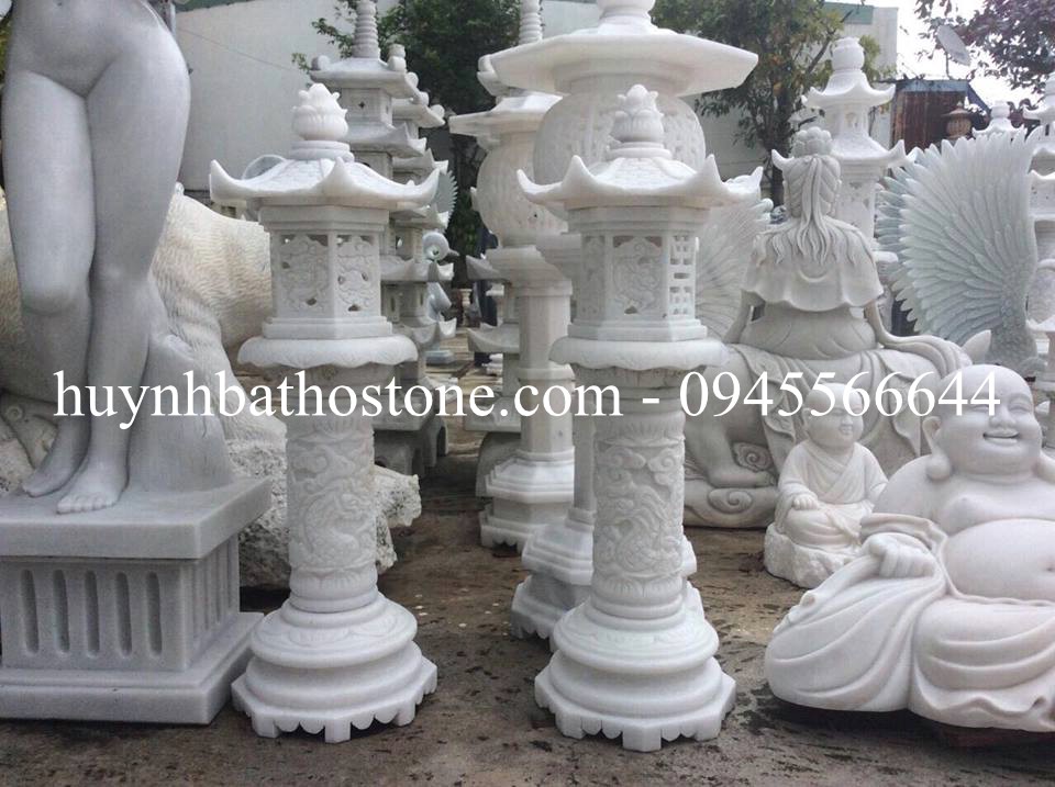 Cặp đèn đá trắng nguyên khối