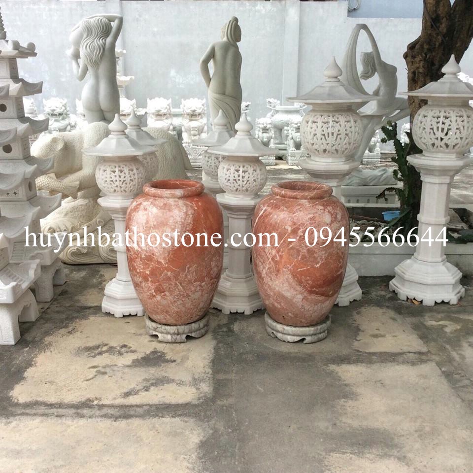 Cặp lọ đá cẩm thạch đỏ nguyên khối
