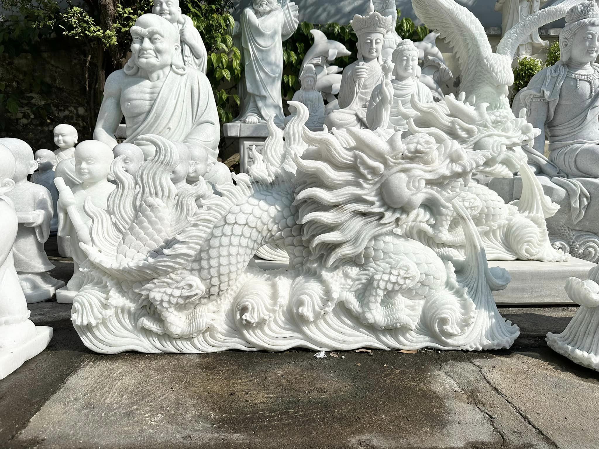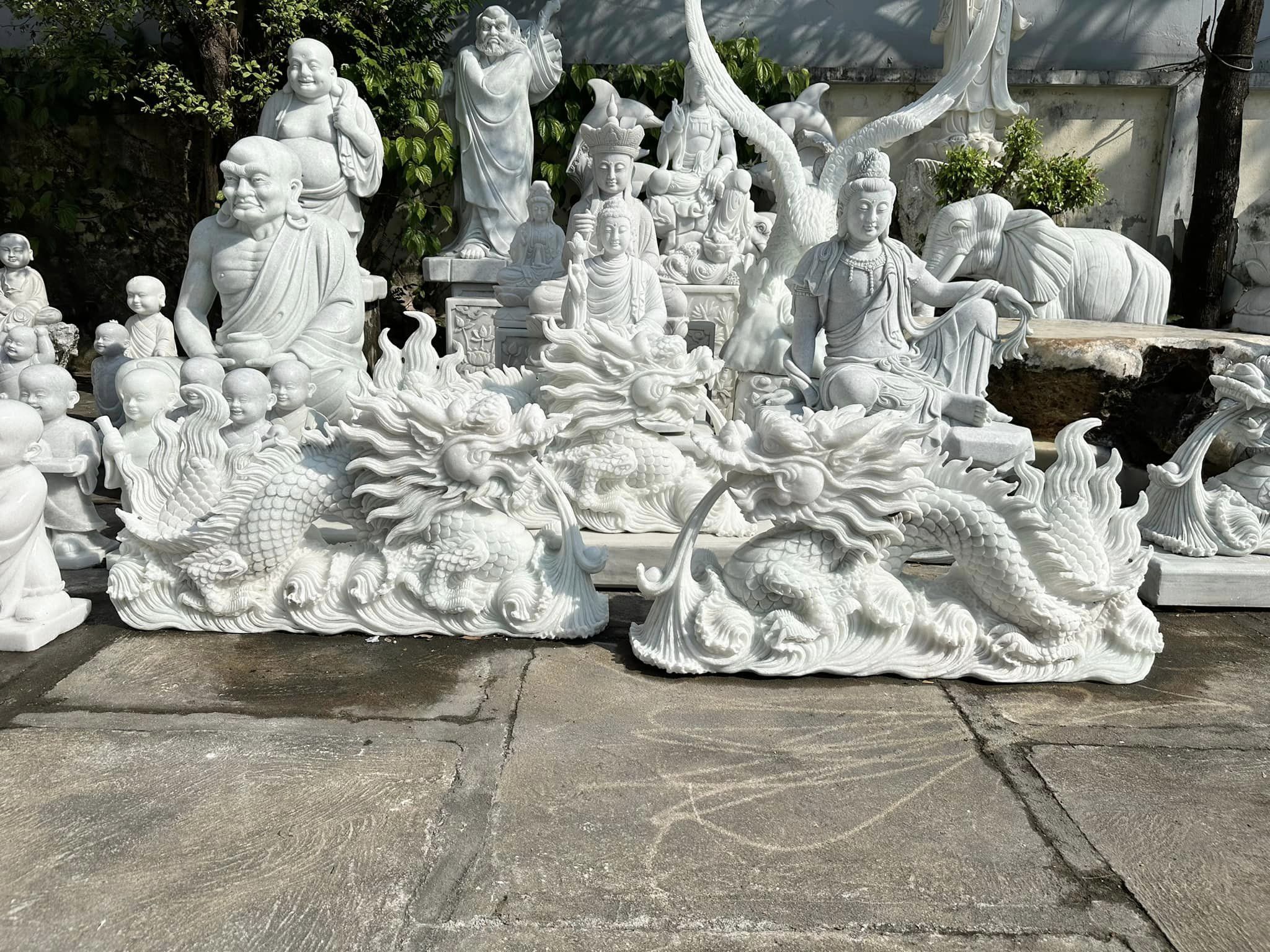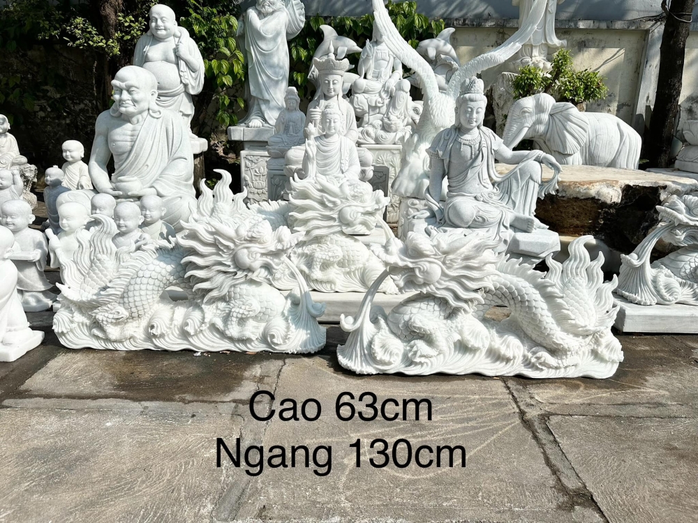 Cặp rồng 130cm đá nguyên khối - cặp rồng bằng đá