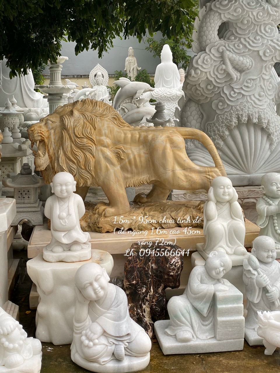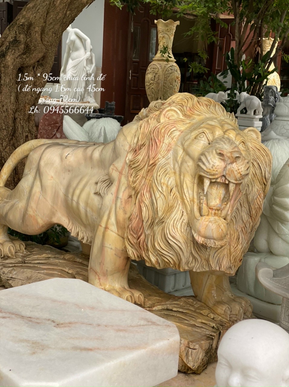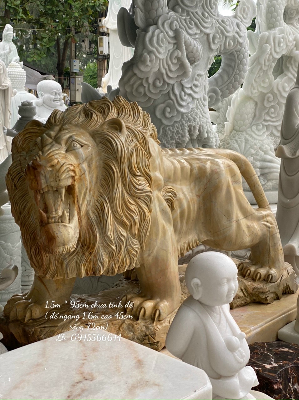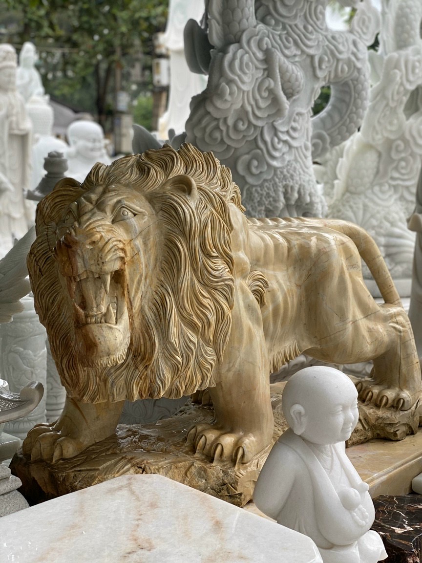Tượng Sư Tử bằng đá cẩm thạch vàng nguyên khối tự nhiên.