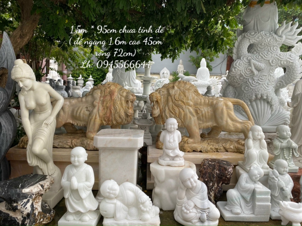 Bảng giá Sư tử bằng đá: Sư tử đá cẩm thạch trắng nguyên khối cao 1,5m giá cặp 35 triệu. Sư tử đá trắng non nước tự nhiên đep cao 40cm giá 2,5 triệu cặp. Sư tử đá trắng tự nhiên cao 50cm giá 4,5triệu cặp. Tượng 2 cọn Sư tử đá đẹp cao 2,8m giá 140 triệu