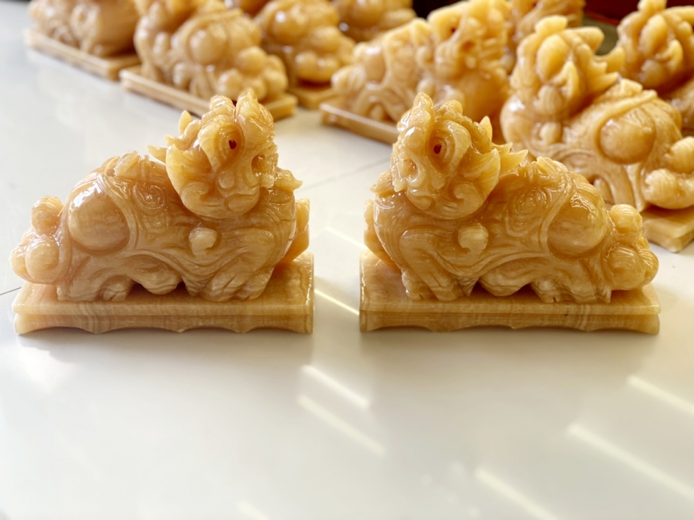 Cặp tỳ hưu đá ngọc hoàng long 20cm đá đẹp.