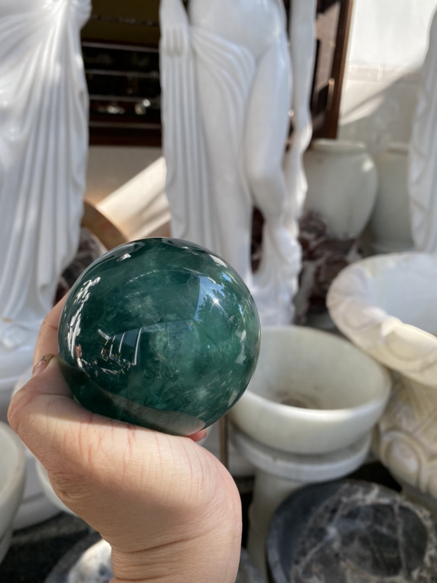 Thông tin sản phẩm: + Tên sản phầm: Qủa cầu phong thủy đá thạch anh xanh florit tự nhiên + Kích thước: 8cm, 1kg. + Giá: 700,000 VNĐ. + Hợp mệnh: Hỏa - Mộc Công dụng của quả cầu phong thủy đá florit tự nhiên: + Mang lại sự thông thái, sắc bén, giúp cải thiện các mối quan hệ đồng nghiệp, lãnh đạo - nhân viên, hay các mối quan hệ làm ăn