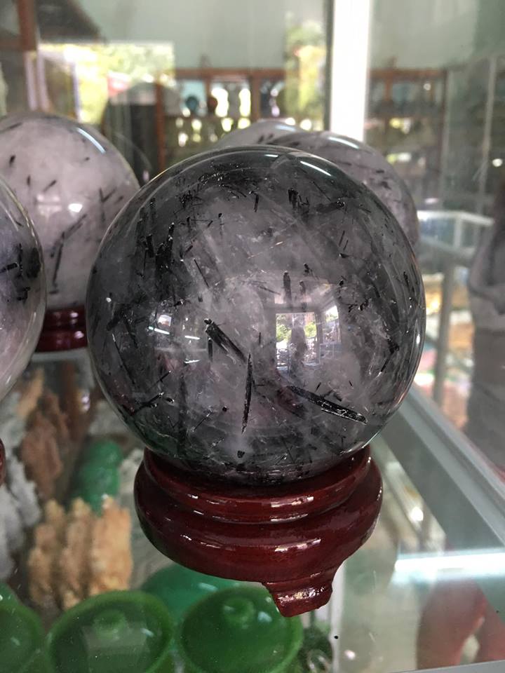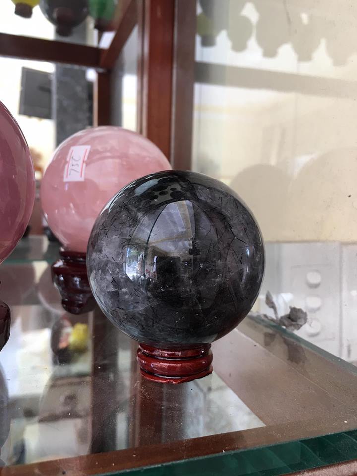 Qủa cầu phong thủy đá thạch anh tóc đen tự nhiên.