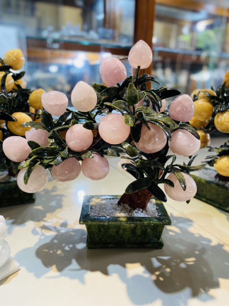 Cây đào thạch anh Hồng tự nhiên, cao 45cm ngang 48cm 18 quả lớn.