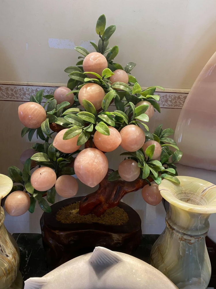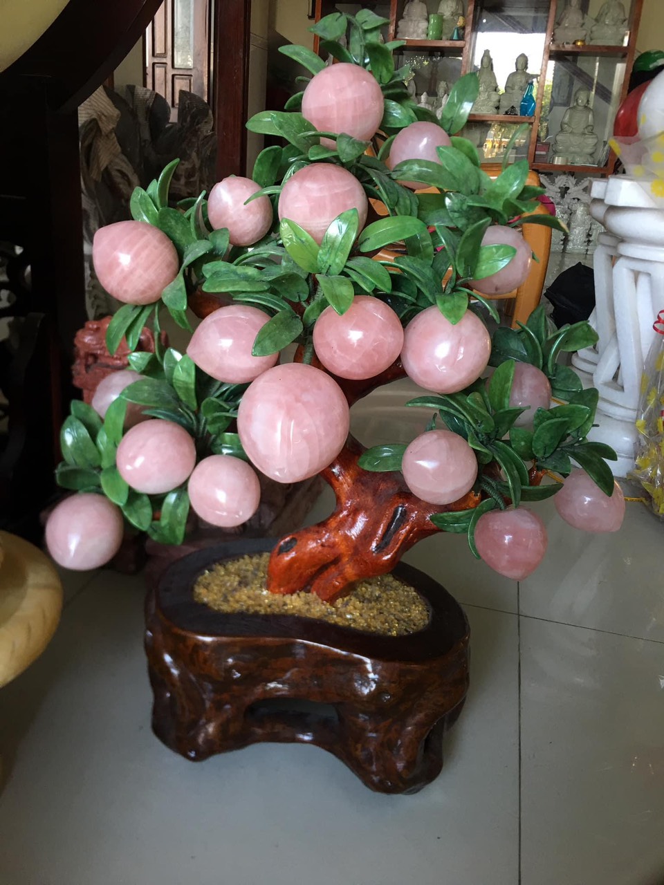 Cây đào tiên đá thạch anh hồng 18 quả đại cao 81cm