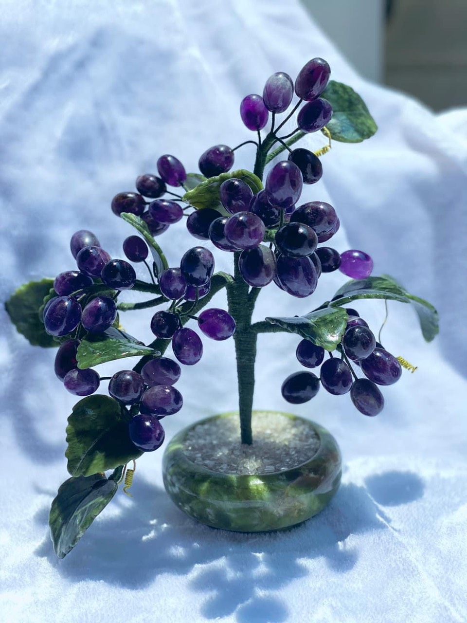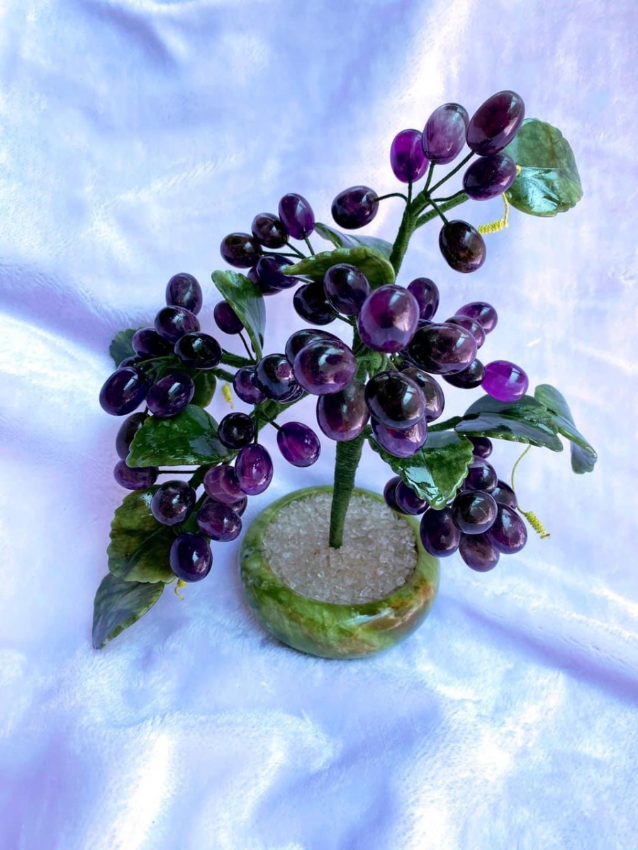 Vật phẩm phong thủy: Cây nho tài lộc đá thạch anh tím tự nhiên Kích thước: cao 30cm. Giá: 2.000.000 Vận chuyển: freeship toàn quốc, nhận hàng kiểm tra hàng trước khi thanh toán. ý nghĩa phong thủy: Cây nho thạch anh mang lại may mắn - sung túc - bình an - phú quý cho người sử dụng.
