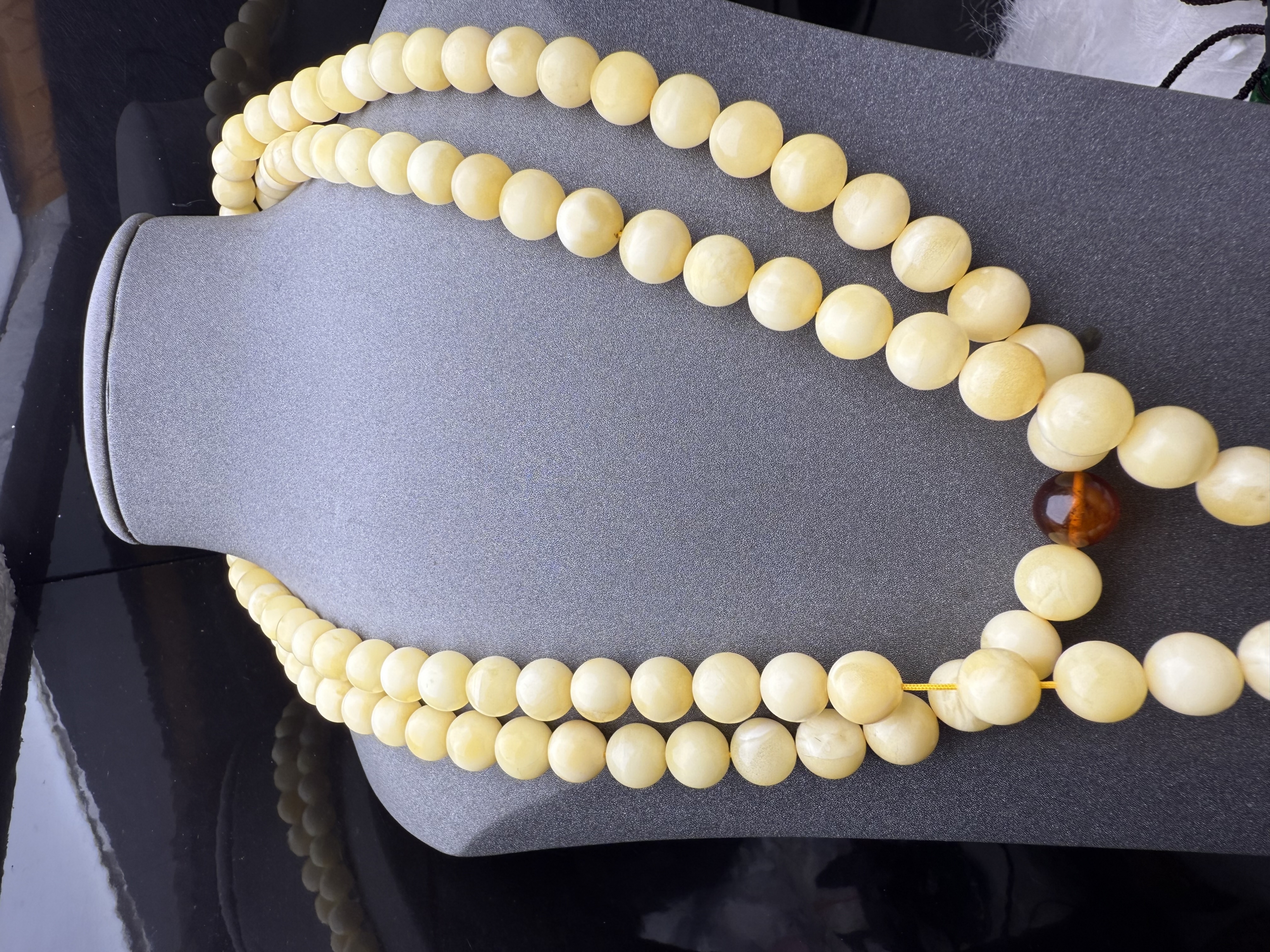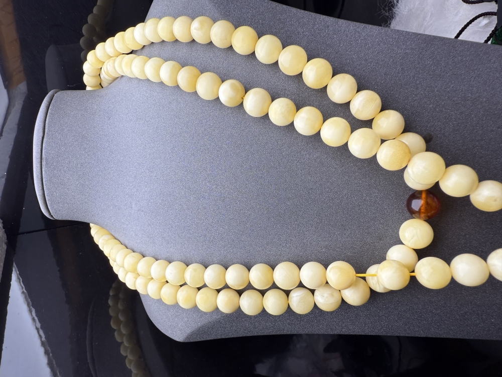 Chuỗi 108v hổ phách trắng bạch Lạp 9li.