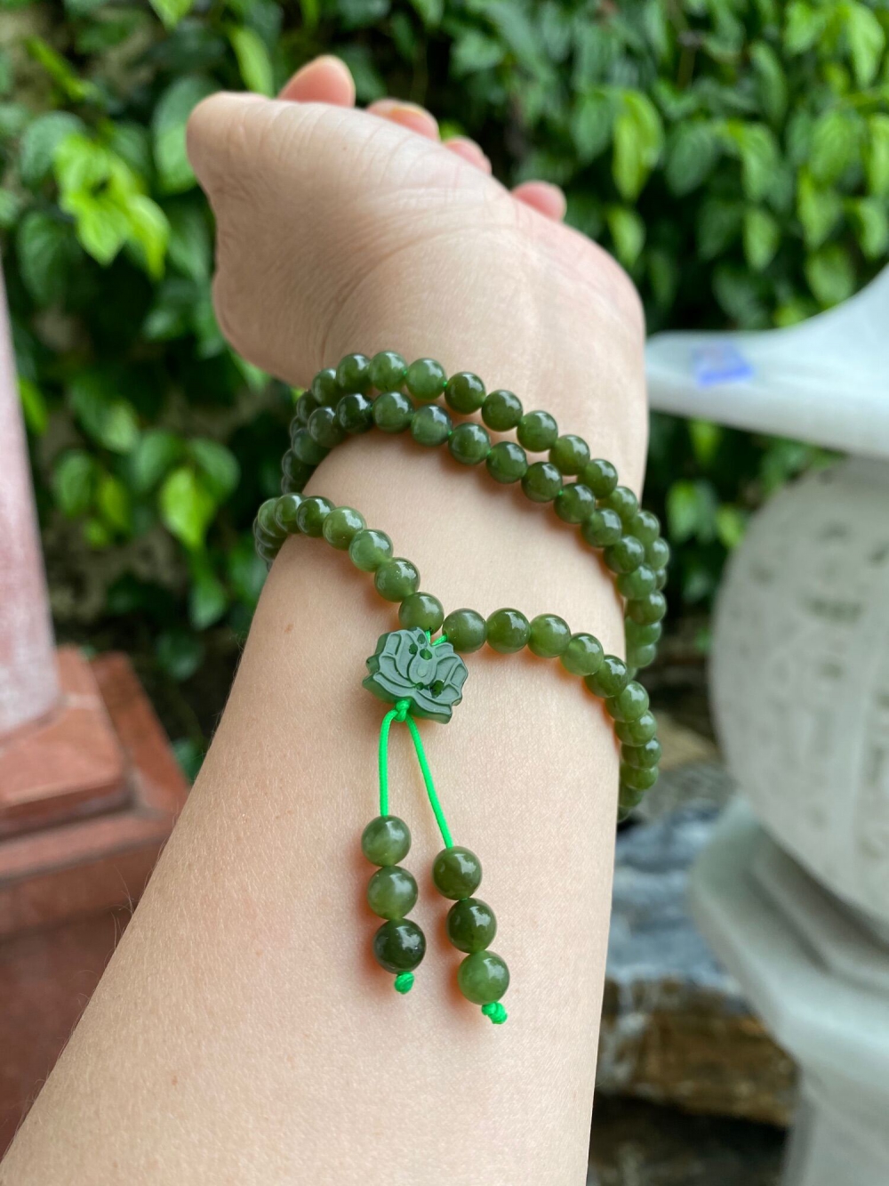 Chuỗi ngọc bích Canada tự nhiên 108v 6ly mix hoa sen ngọc bích