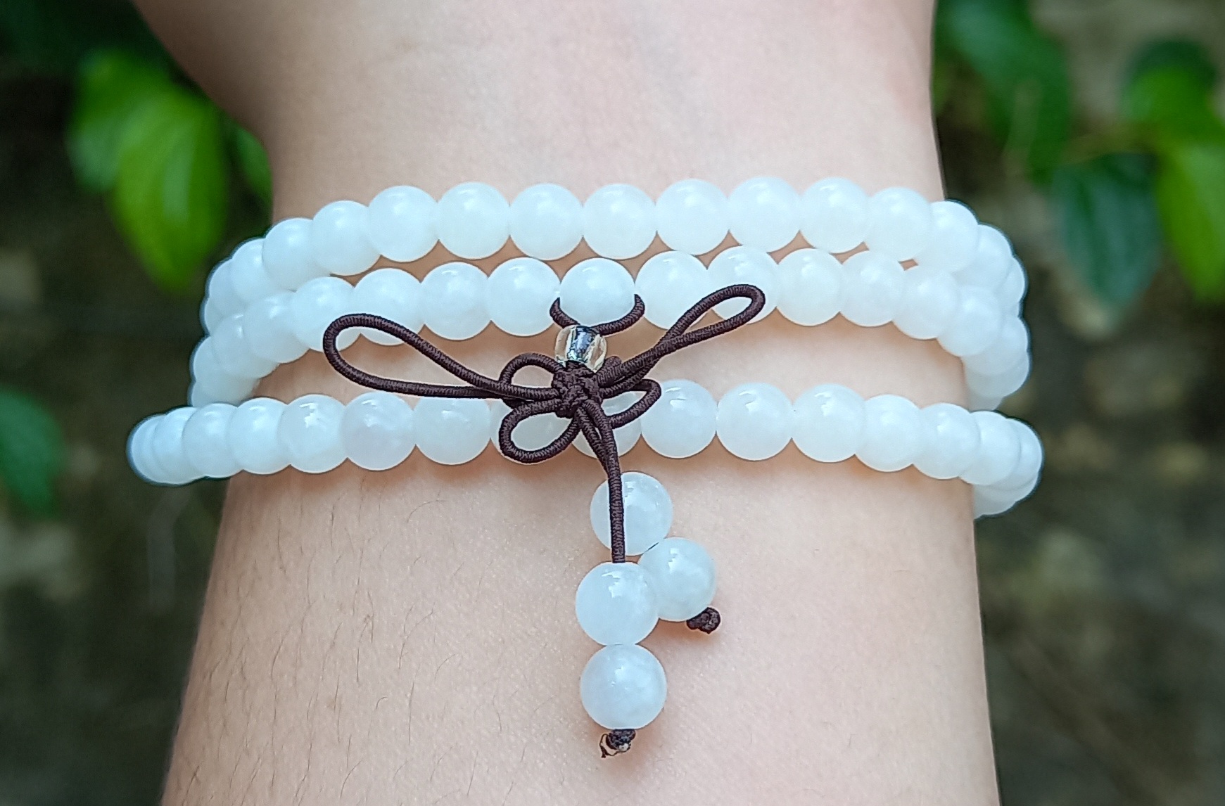 Chuỗi quấn 3 vòng tay bạch ngọc- mệnh kim, thuỷ.