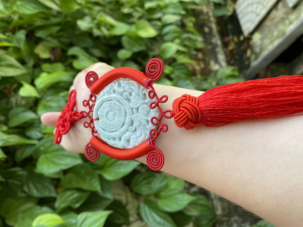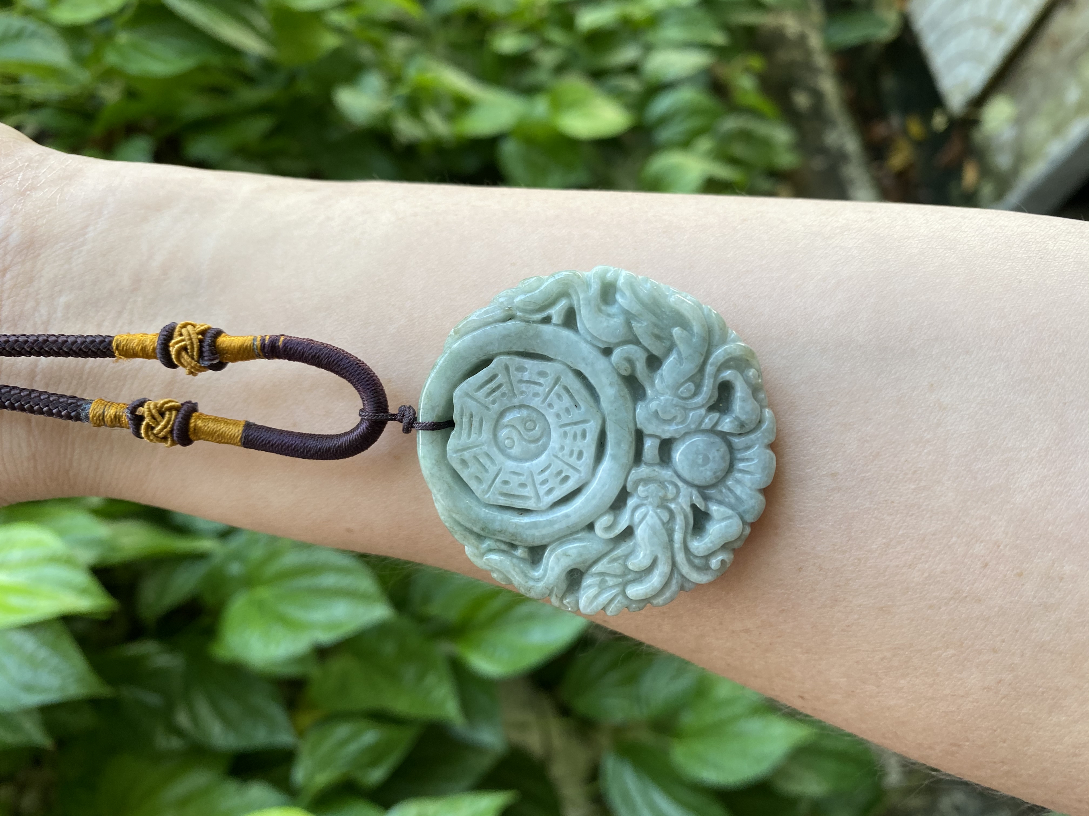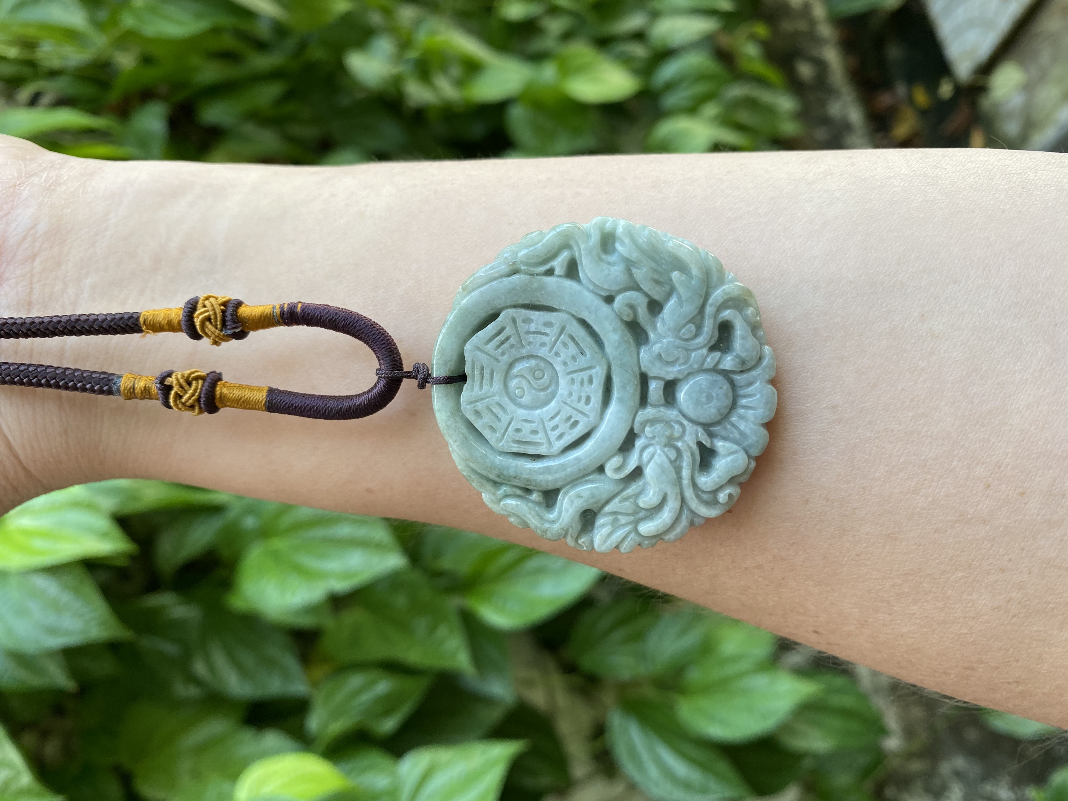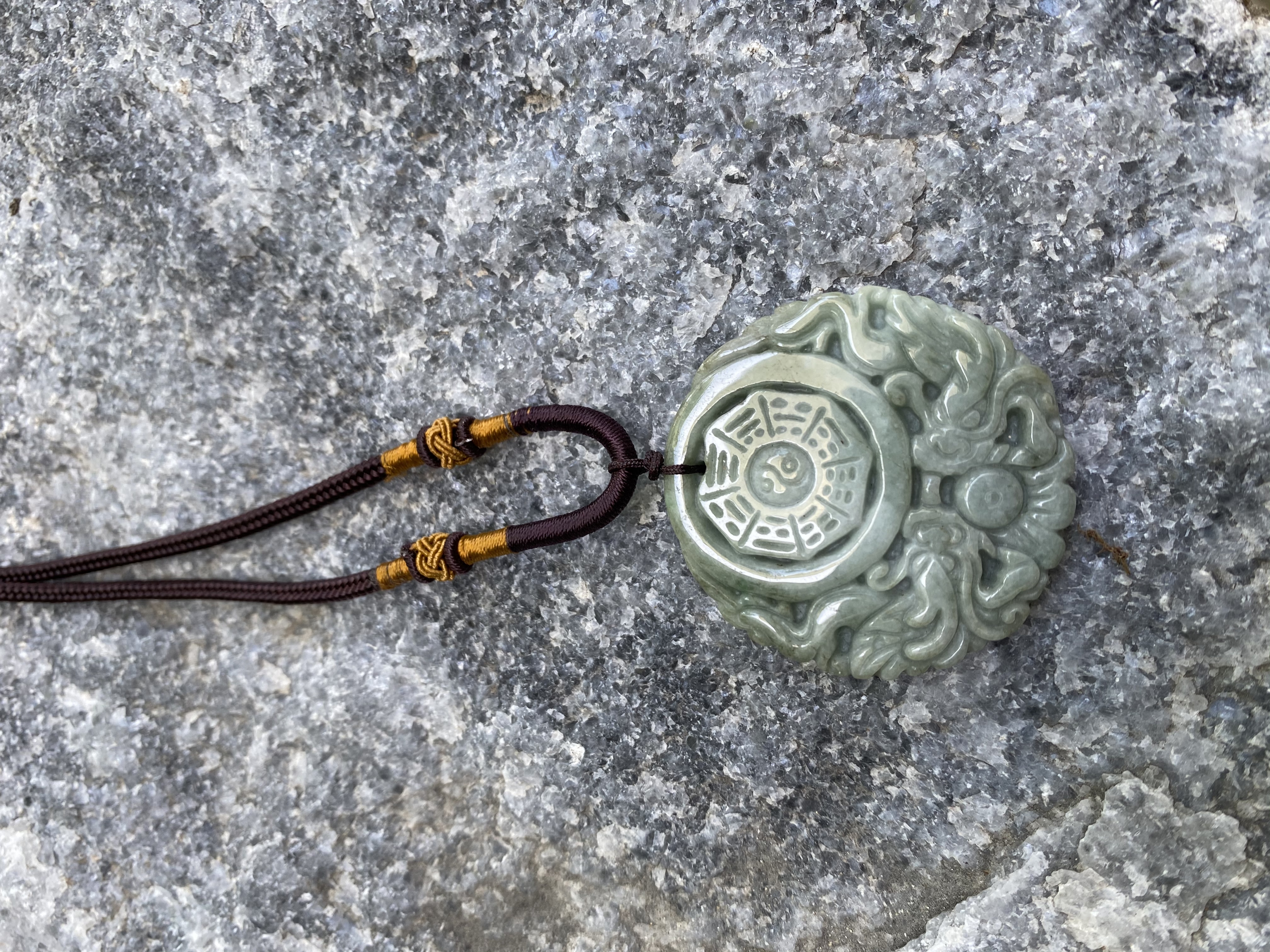 Dây treo hình bát quái phong thủy bằng Ngọc Cẩm thạch tự nhiên.
