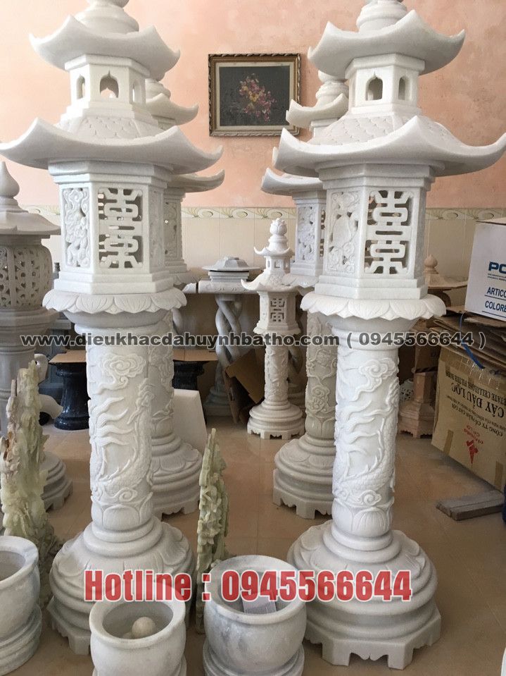 Điêu khắc đá mỹ nghệ Non Nước Huỳnh Bá Thơ chuyên điêu khắc các loại đèn đá thờ cúng, đèn đá sân vườn đẹp, giá rẻ, uy tín. Đèn đá non nướclà một sản phẩm phổ biến, được sử dụng rất nhiều trong khuôn viên nhà ở, sân vườn, nhà thờ họ. Cấu tạo chung của đèn đá non nước gồm 3 phần: Đế đèn (chân đèn), cột đèn và phần lồng đèn. Đèn đá non nước thường được chia thành hai loại là đèn đá thờ cúng và đèn đá sân vườn. Cấu tạo của hai loại đèn này có những điểm khác nhau rõ rệt. + Đèn thờ bằng đá non nước thường có cột đèn cao, kích thước nhỏ, đơn giản. Loại đèn này phục vụ cho mục đích thờ cúng, thường đặt tại nhà thờ họ, khu lăng mộ. Chúng thường đi theo cặp, kết hợp với lư hương đá non nước và bàn lễ đá non nước. + Đèn đá non nước sân vườn thì thường được thiết kế thấp hơn, tối giản phần cột đèn. Kích thước khá lớn và phần lồng đèn được điêu khắc cầu kỳ, đẹp mắt. Sản phẩm này thường được đặt tại khuân viên nhà ở, sân vườn, quán cafe,…