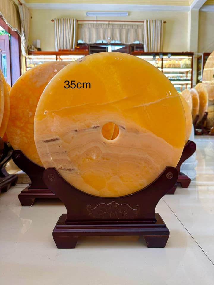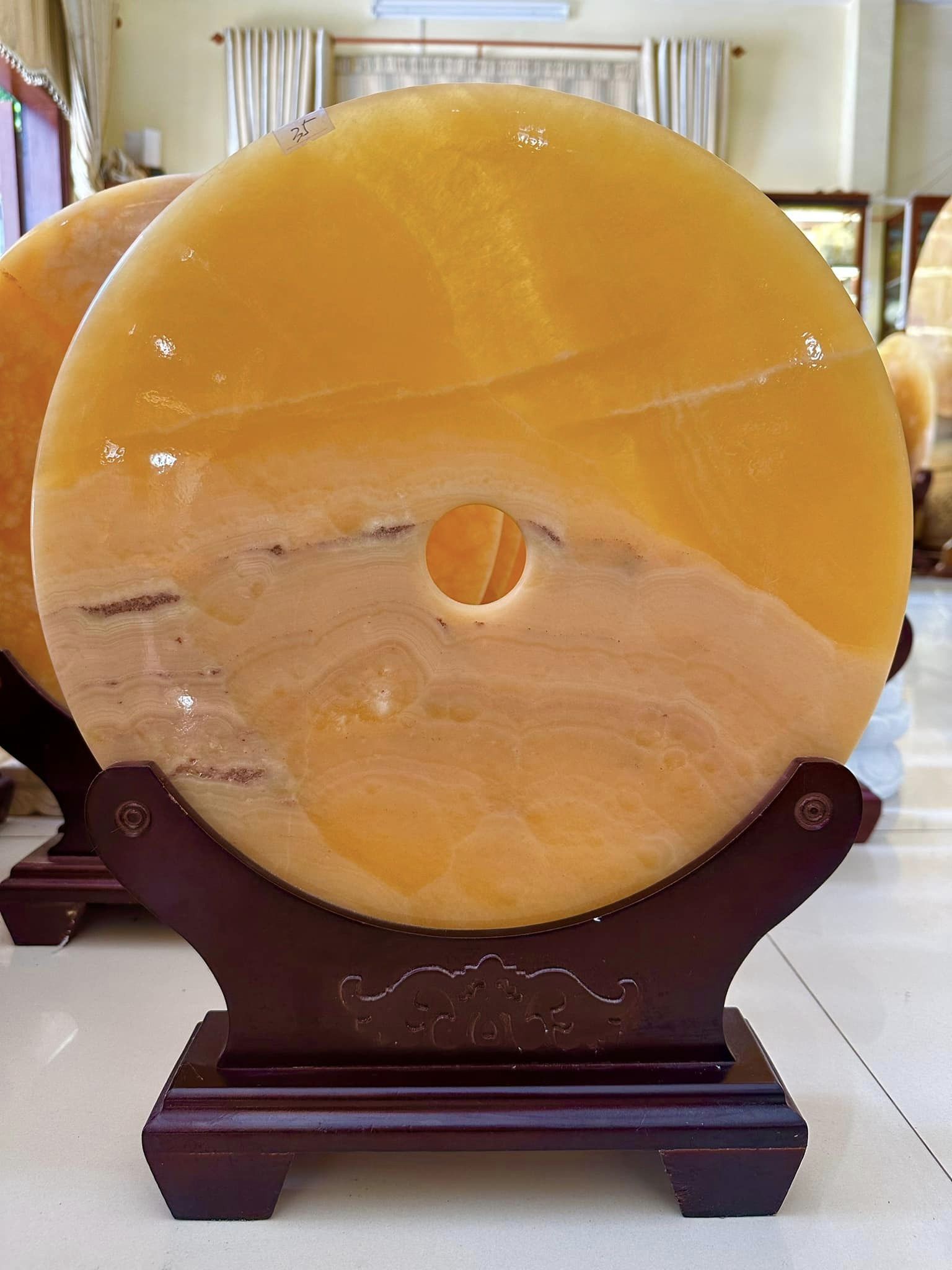 Đồng điếu đá ngọc màu vàng phong thuỷ may mắn, thu hút năng lượng cho gia chủ.