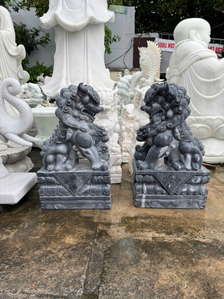 Bức bình phong bằng đá nguyên khối chạm đẹp 2,2m