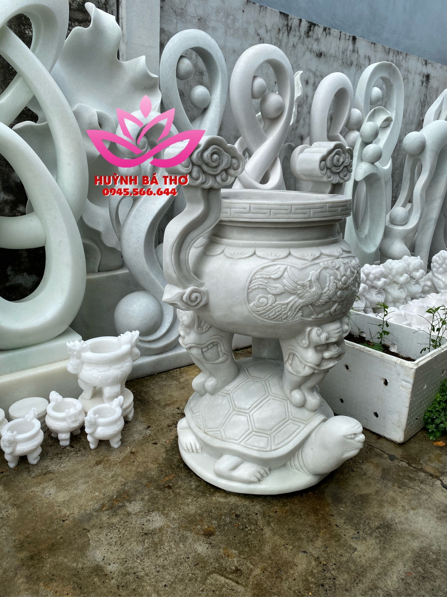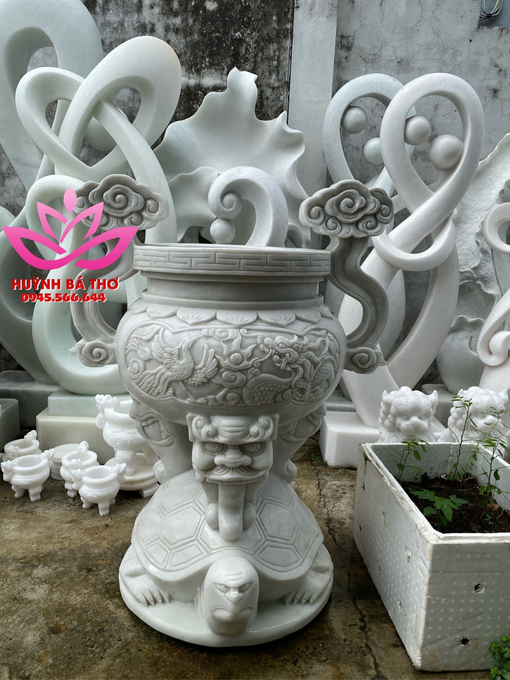Mẫu Lư hương bằng đá đẹp - hai tai Lư làm vân mây - cao 1,2m
