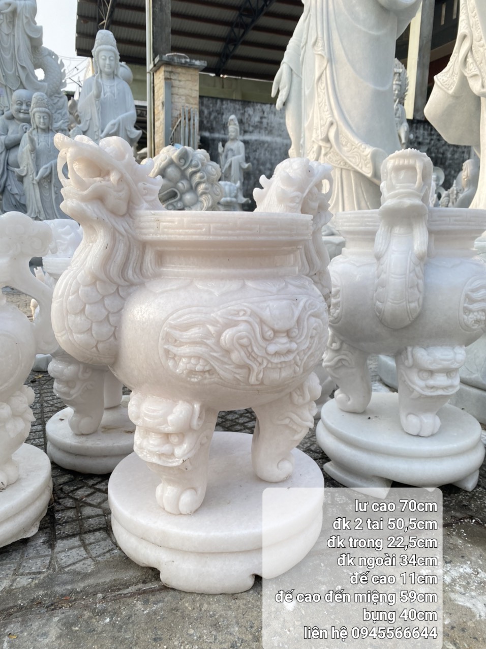 Lư hương chạm đẹp bằng đá nguyên khối loại 70cm