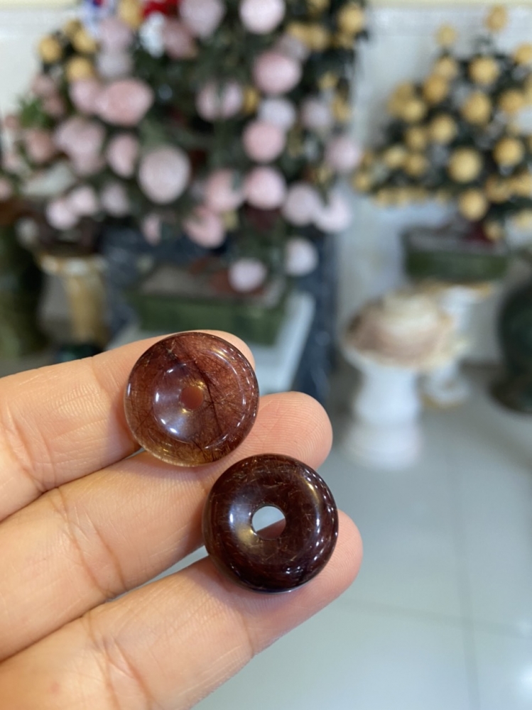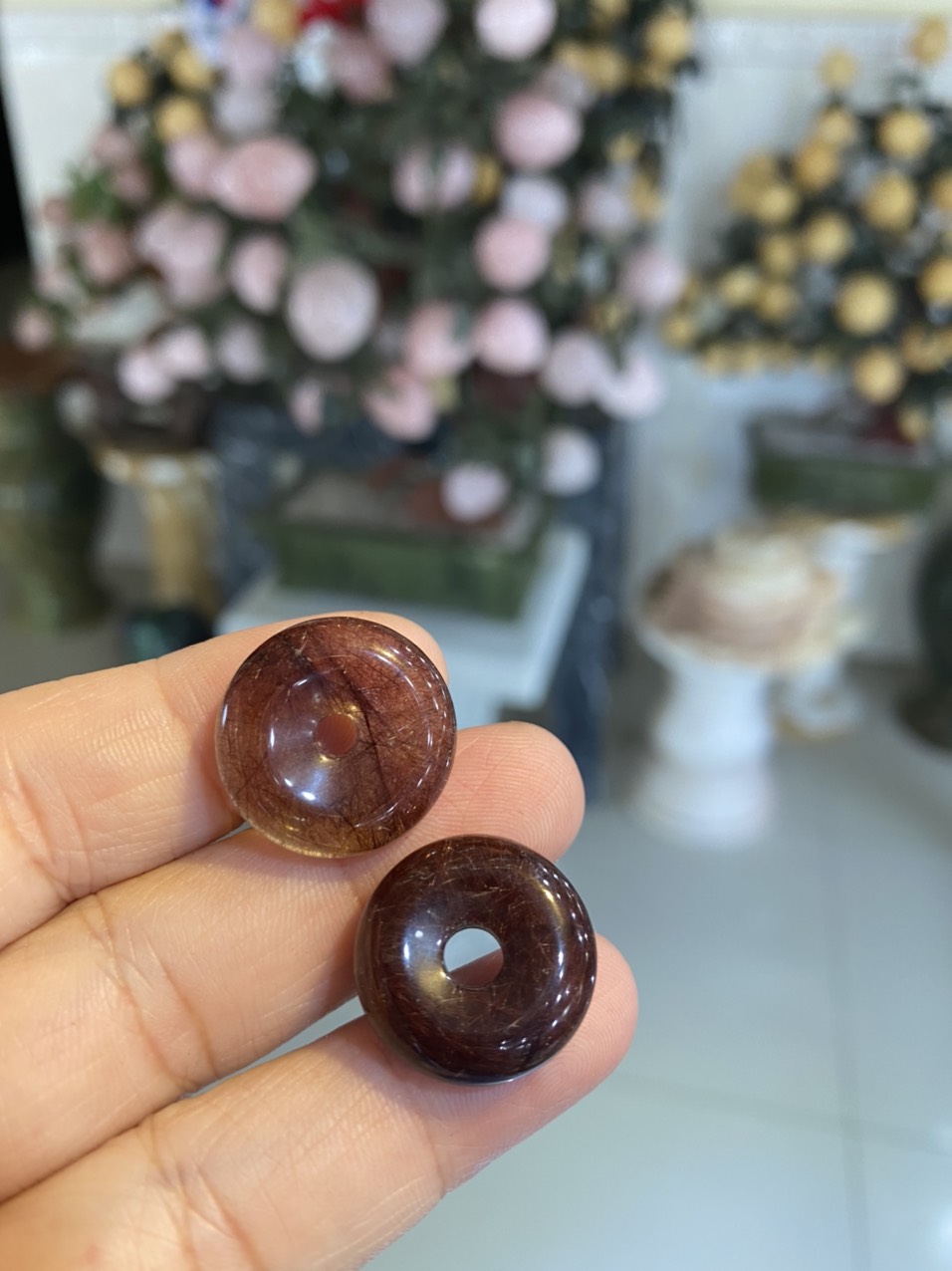 Mặt dây chuyền Đồng tiền đá thạch anh tóc nâu đỏ 2cm