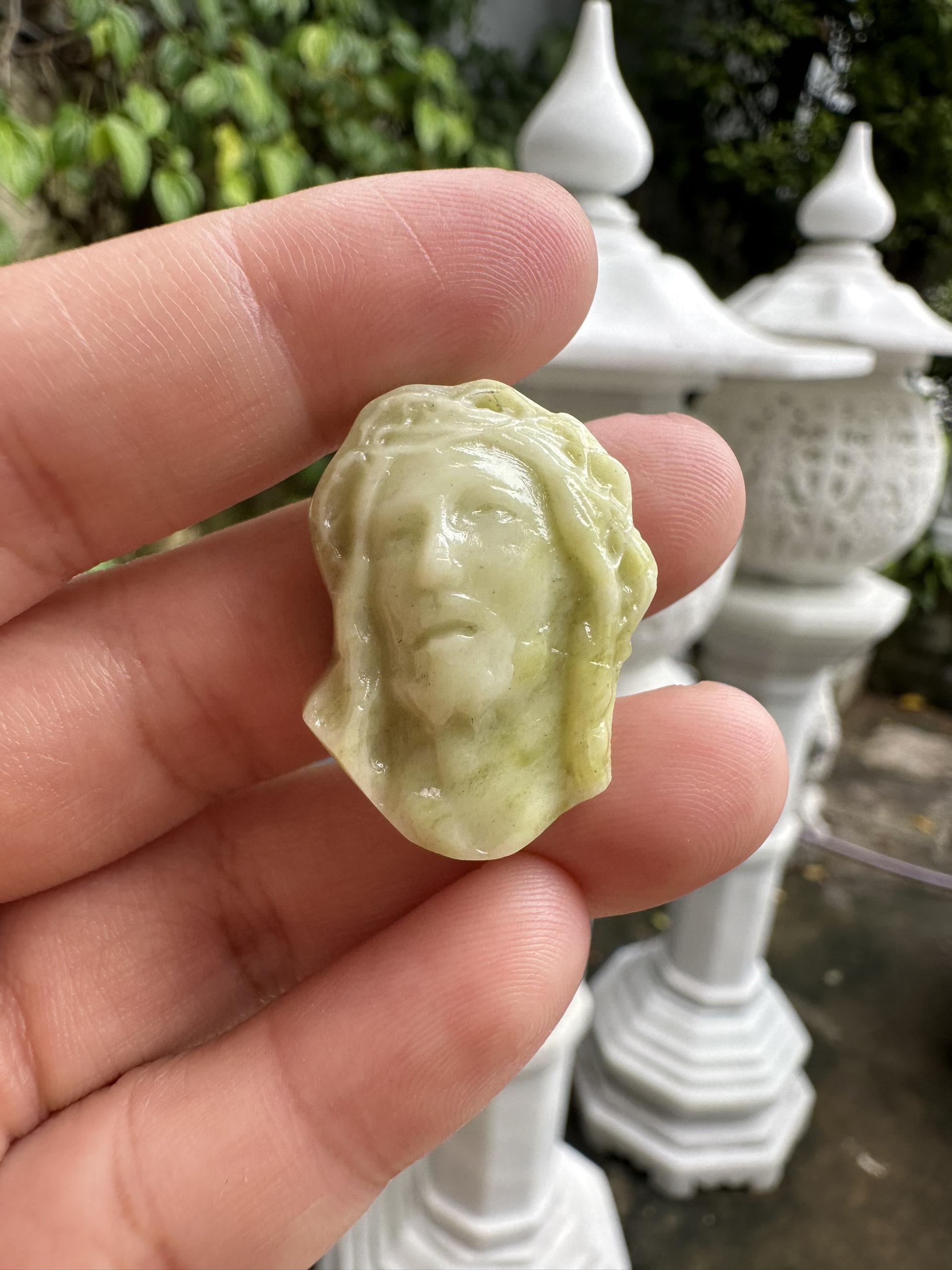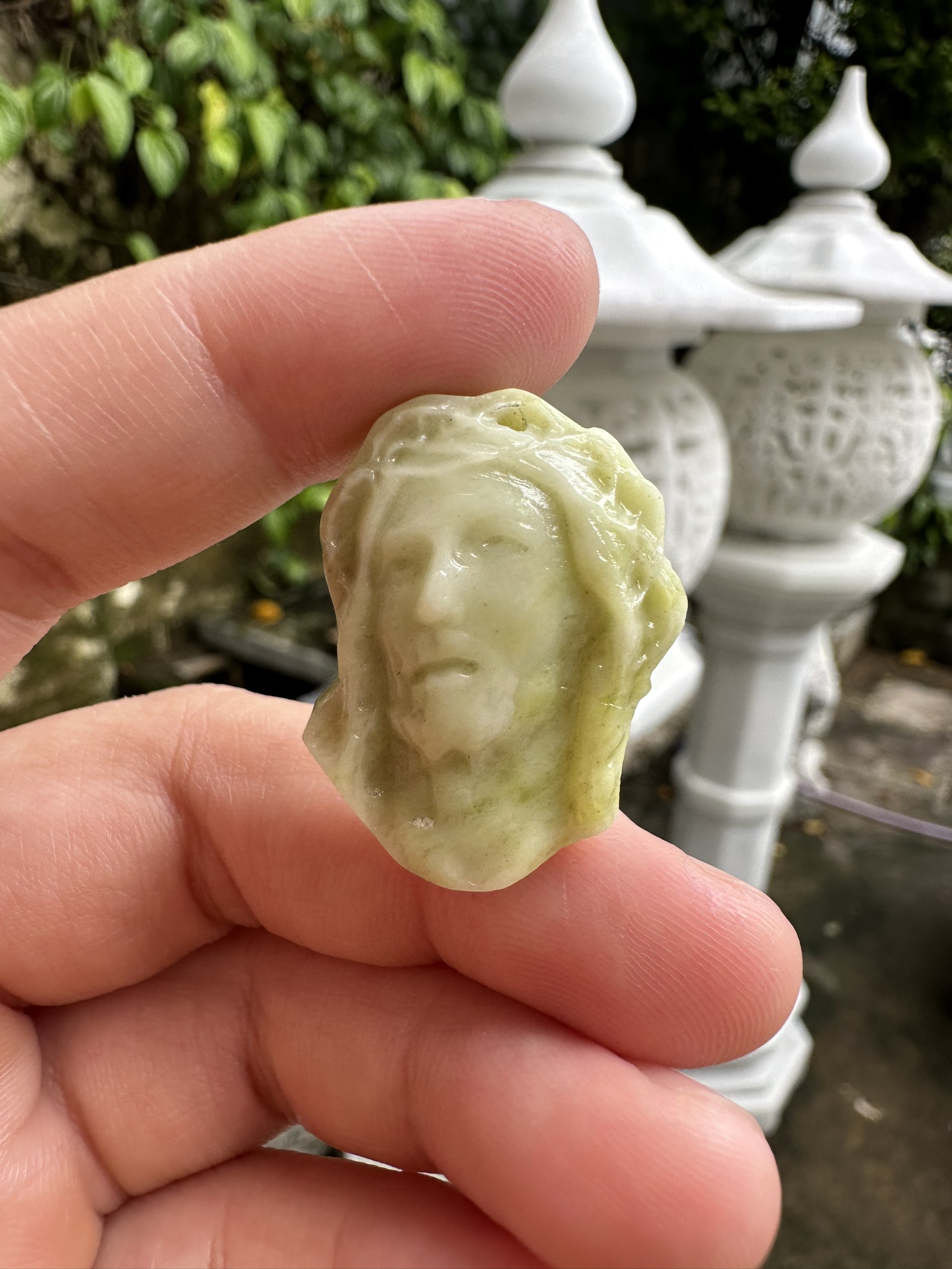 Tượng Phật Quan âm đứng đá trắng xanh cao 2,5m.