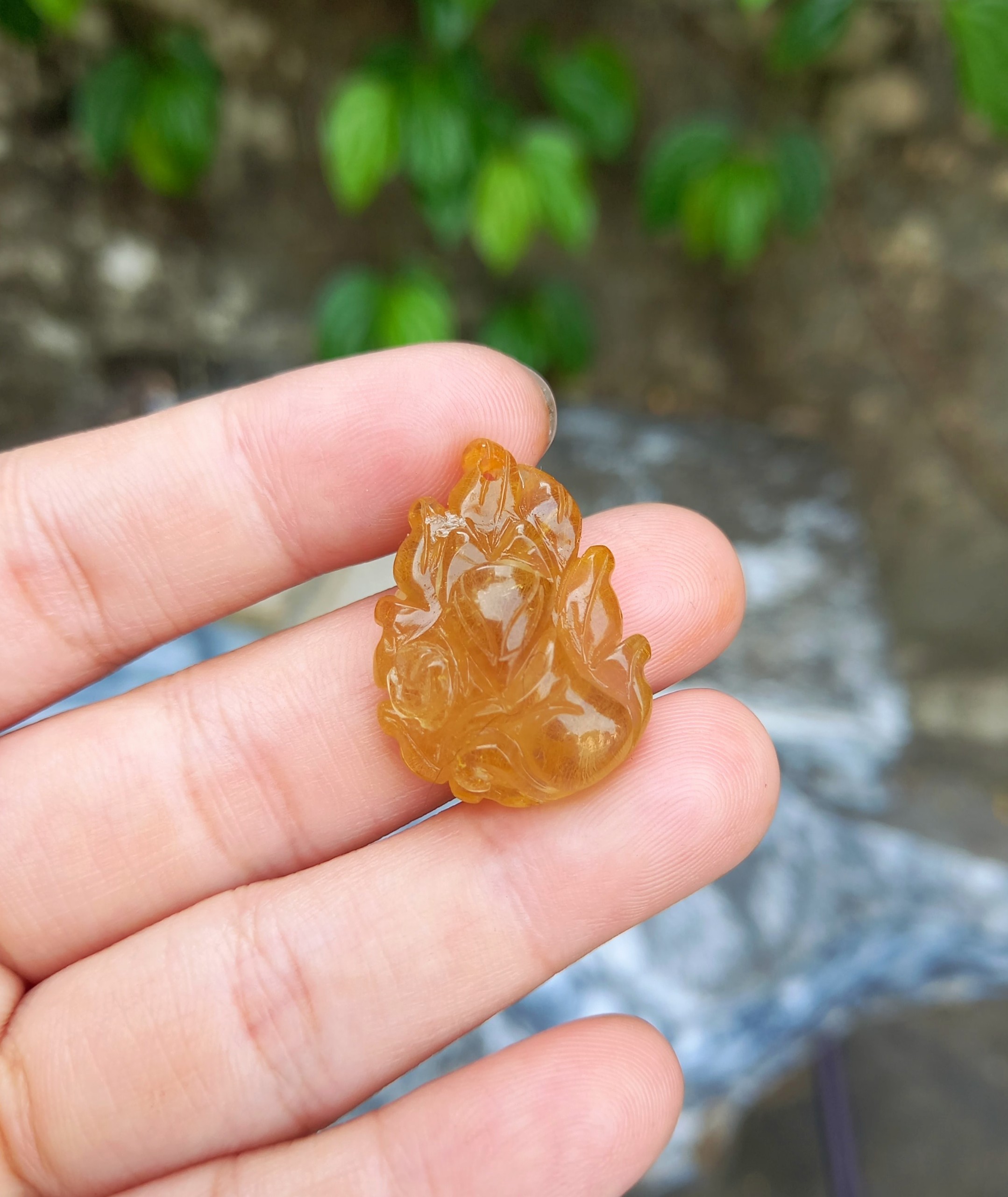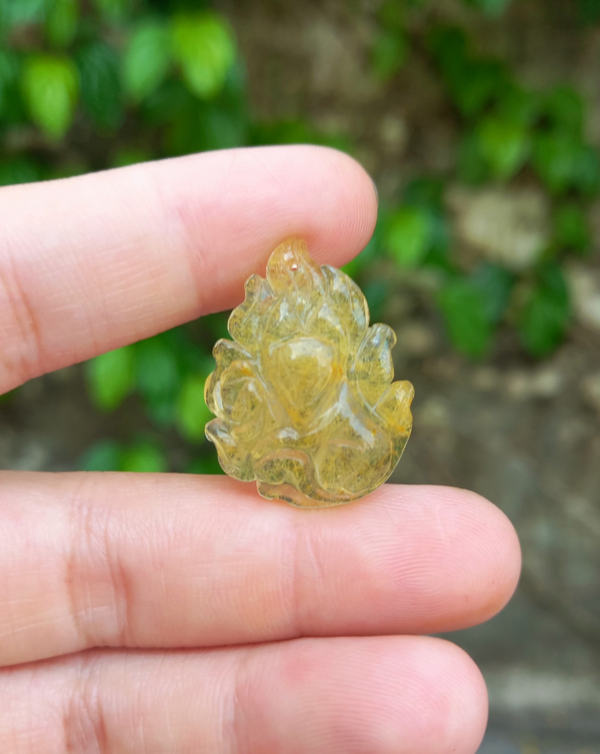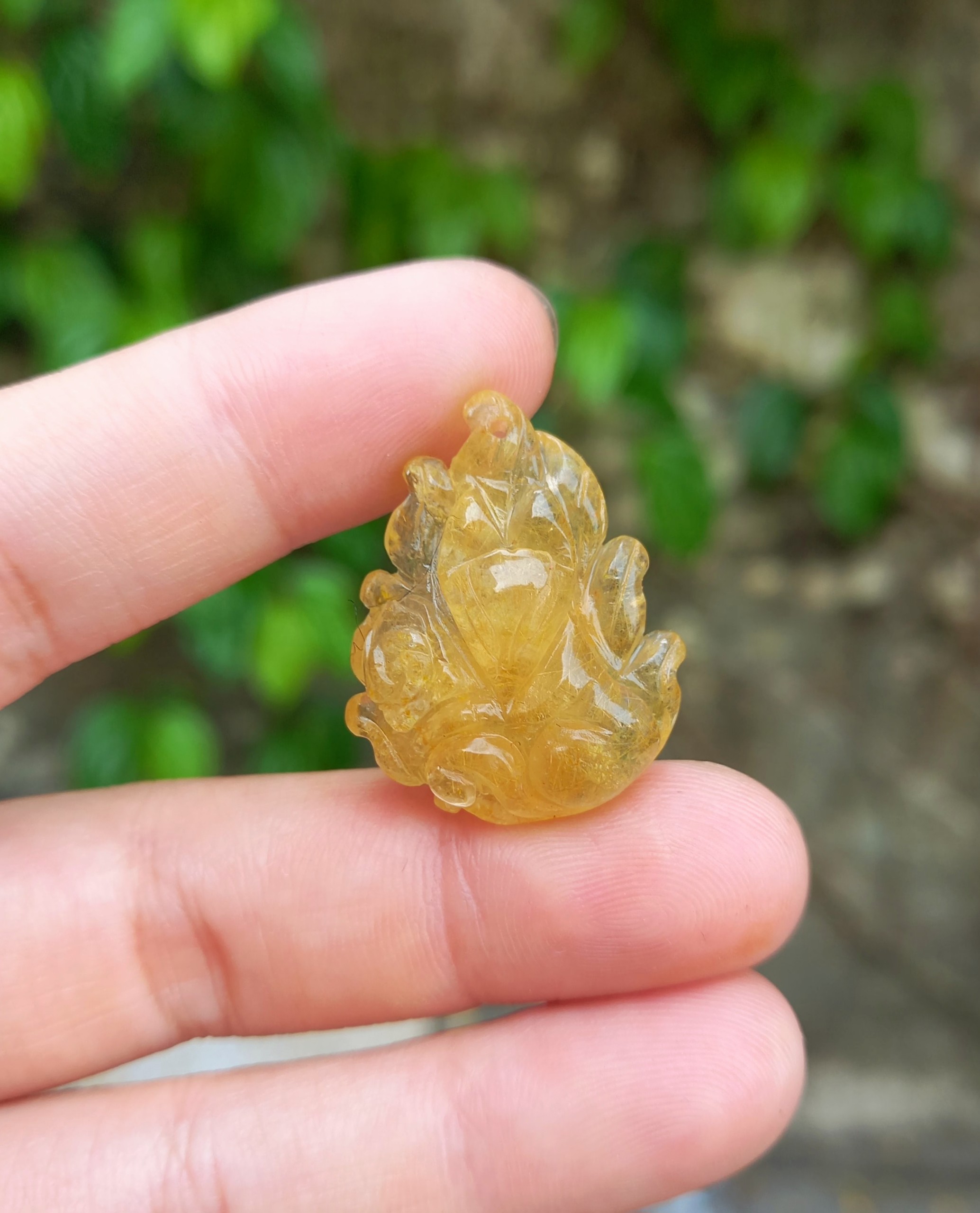 Mặt dây chuyền hồ ly chúa thạch anh tóc vàng tự nhiên.