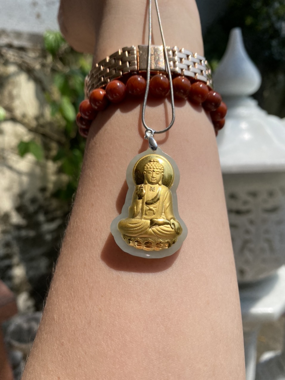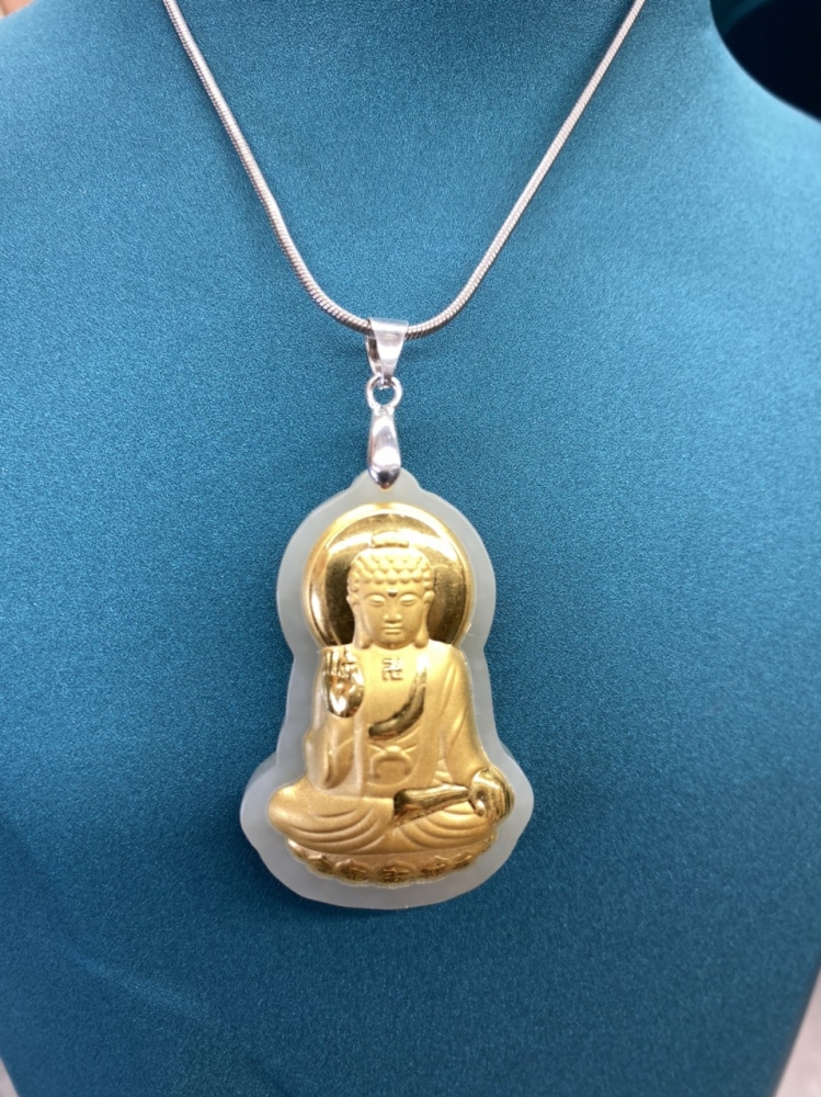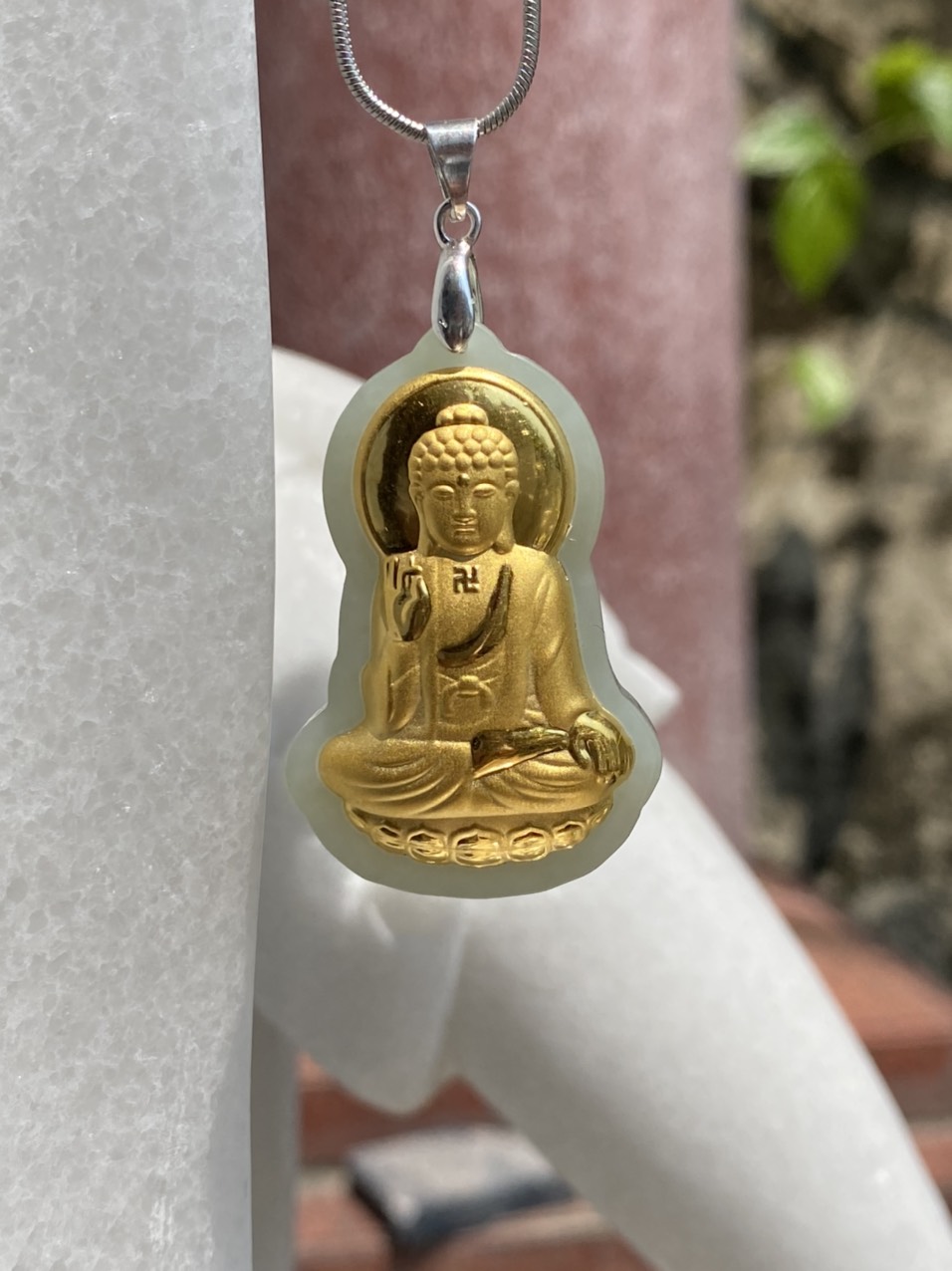 Mặt dây chuyền Phật Bạch ngọc tự nhiên cao cấp mạ vàng 24k.