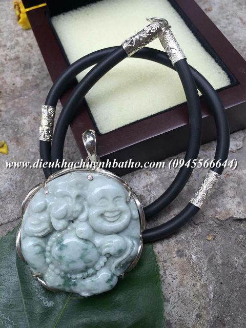 Mặt dây chuyền phật Di Lặc đá ngọc thiên nhiên bọc bạc