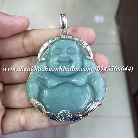 Mặt dây chuyền phật Di Lặc đá ngọc thiên nhiên bọc bạc