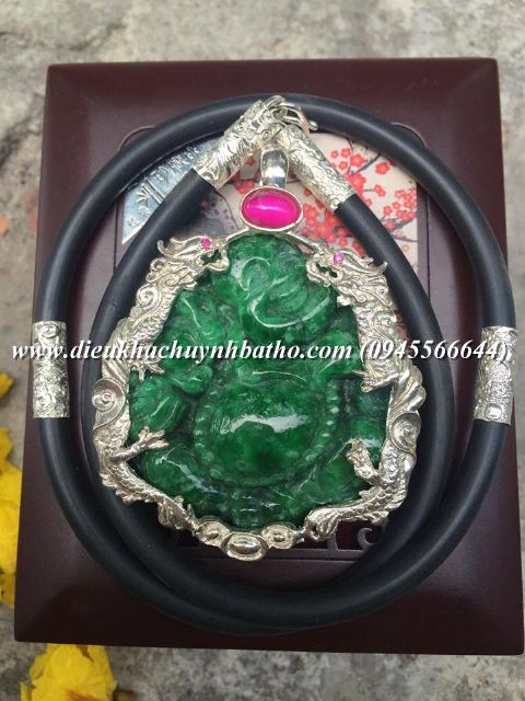 Mặt dây chuyền phật Di Lặc đá ngọc thiên nhiên bọc rồng bạc