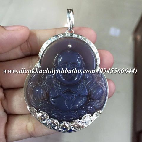 Mặt dây chuyền phật Di Lặc đá thạch anh khói thiên nhiên bọc bạc